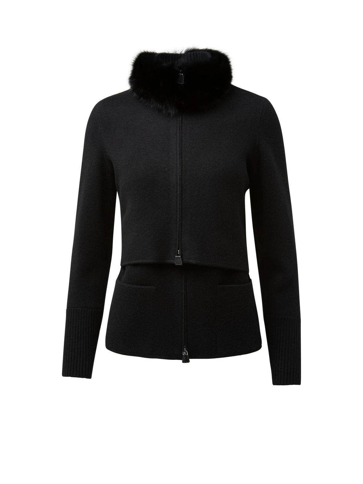 A versatile two-in-one knit cardigan in our beloved cashmere pique with a gorgeous sable fur collar. The cropped over layer sits perfectly over a zip front gilet, adding interesting texture and shape. Pair with a cashmere silk seamless knit in the matching color for a complete look.