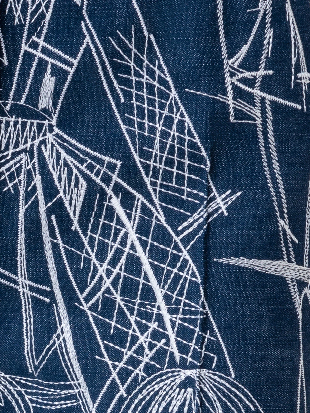 Displaying sketches by creative director Albert Kriemler, the Croquis embroidery of Akris Spring 2023, tells a very personal story. Witty and charming, it was designed by his team as an anniversary surprise.