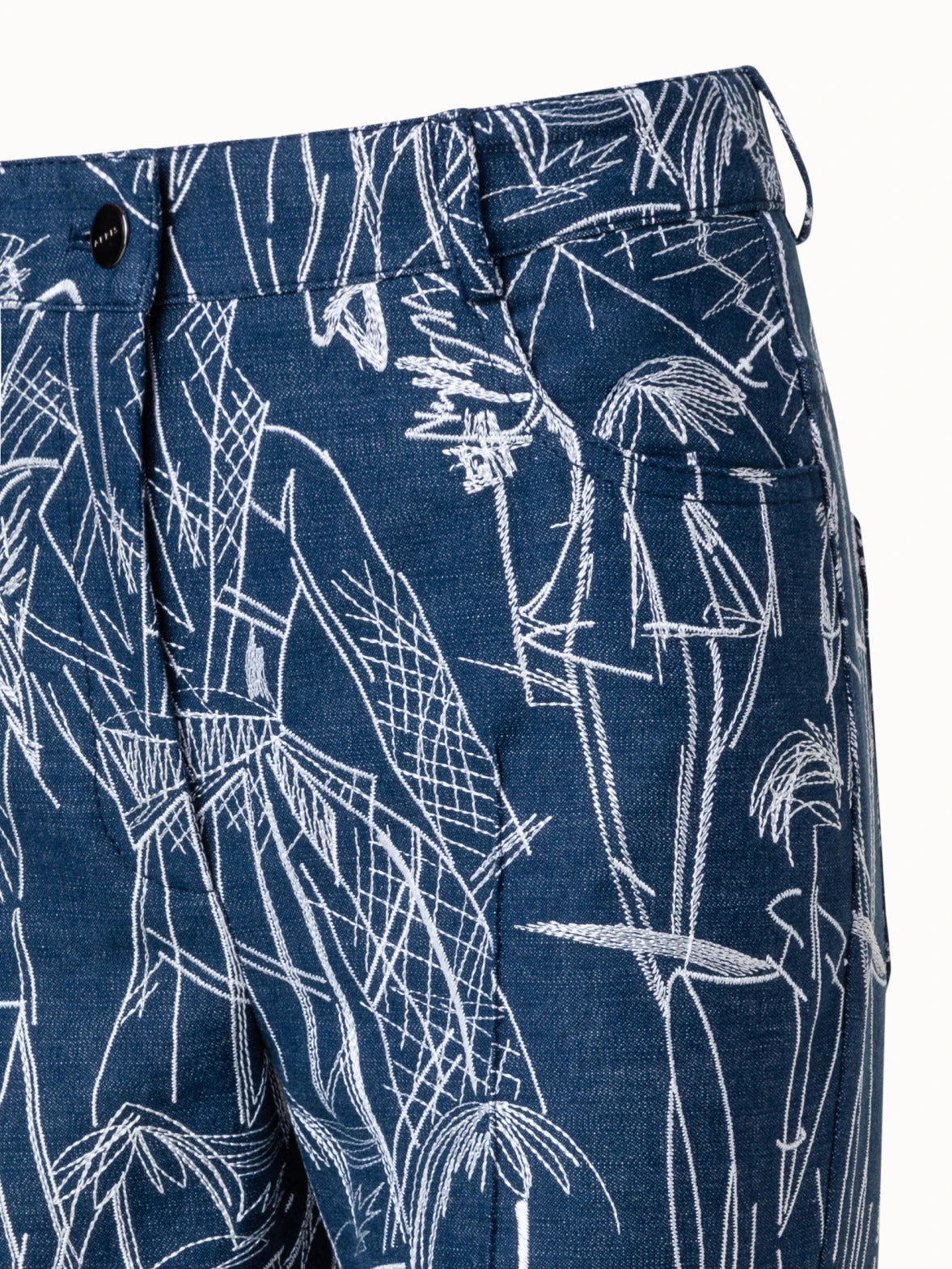 Ideal for everyday wear, these Akris cotton stretch denim pants Farid offer comfort and versatility while being elevated through the embroidery. They have a slim fit at the hips and thighs, then falls into flared leg bottoms for an elongated look. The classic denim style is completed with a front closure and five pockets.