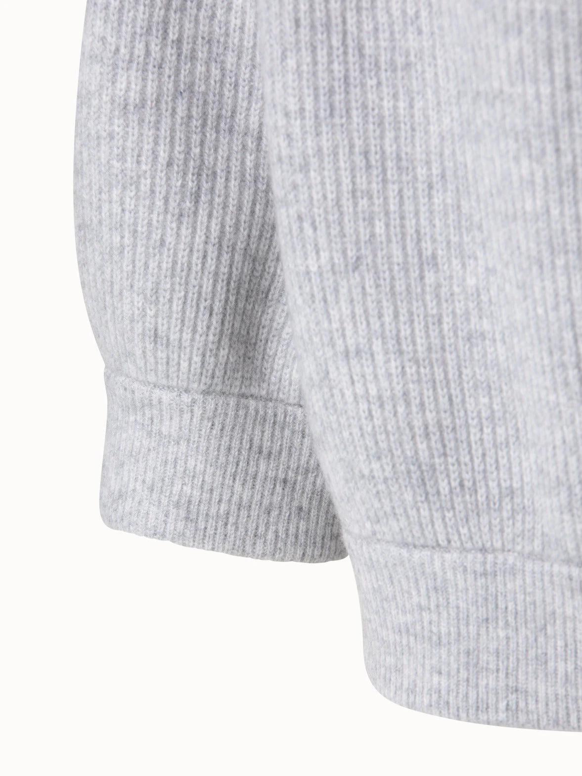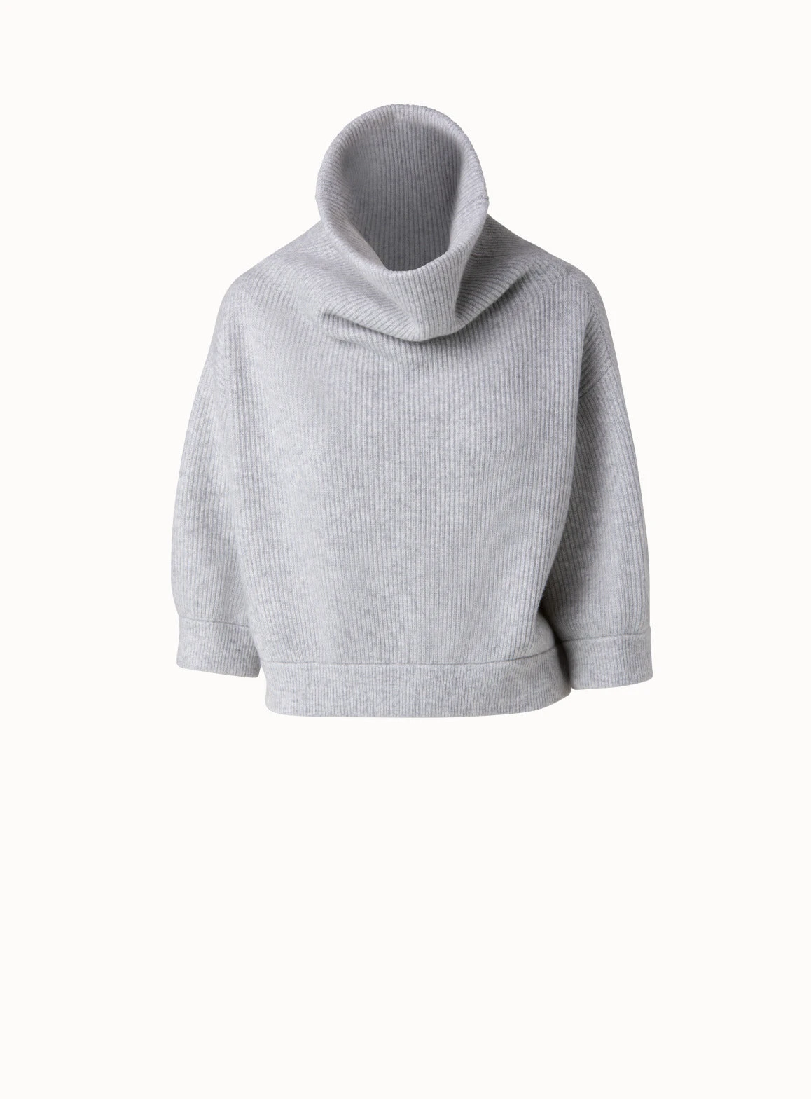 Discover a new cozy silhouette with this ribbed knit cashmere pullover. It is cut for an oversized boxy silhouette, adding volume to any look, from casual to elegant. Features a cowl neck and 3/4 sleeves.
