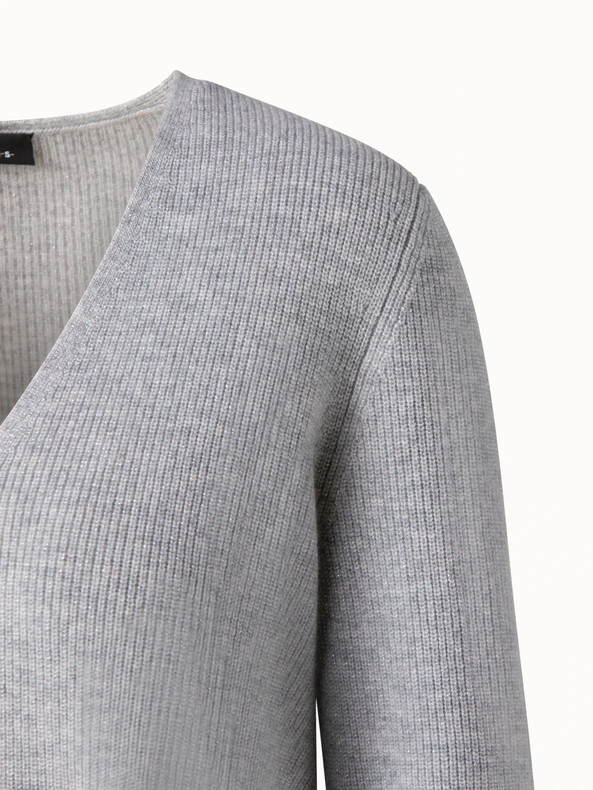 A refined lurex blend adds a subtle metallic shine to this cashmere rib knit pullover. Easily dress it up or down thanks to the elegant V-neck and timeless shape.
