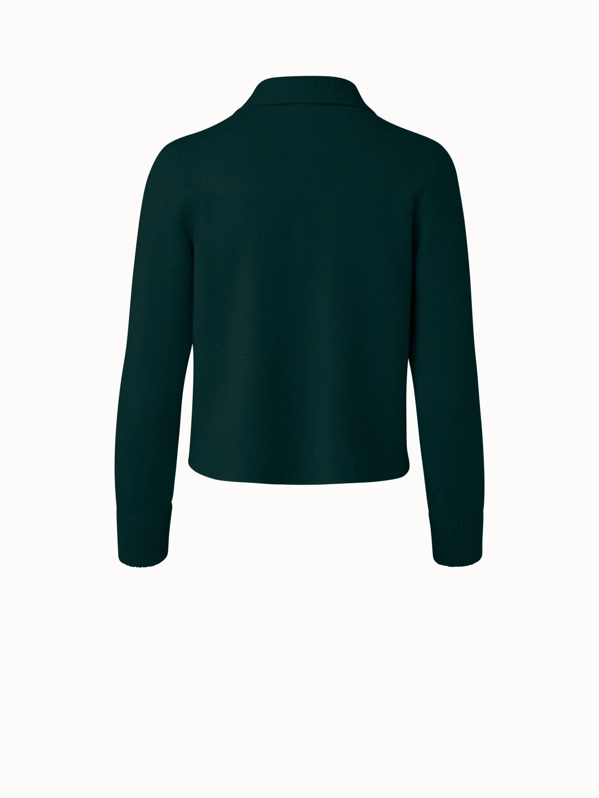 This short knit jacket is crafted in soft cashmere piqué. It features patched pockets for practicality and a two-way zip closure with signature Akris trapezoid pullers for versatile styling.