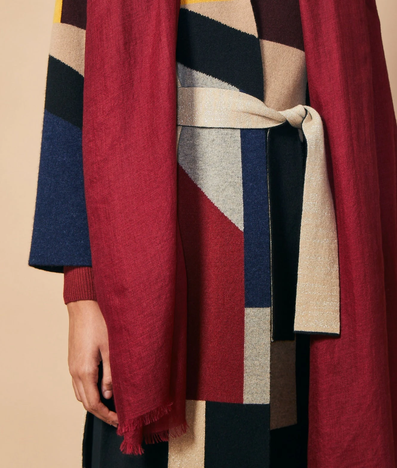 This soft scarf drapes nicely around your neck, or can be worn as a shawl over your shoulders. Measures 135 x 200 cm.