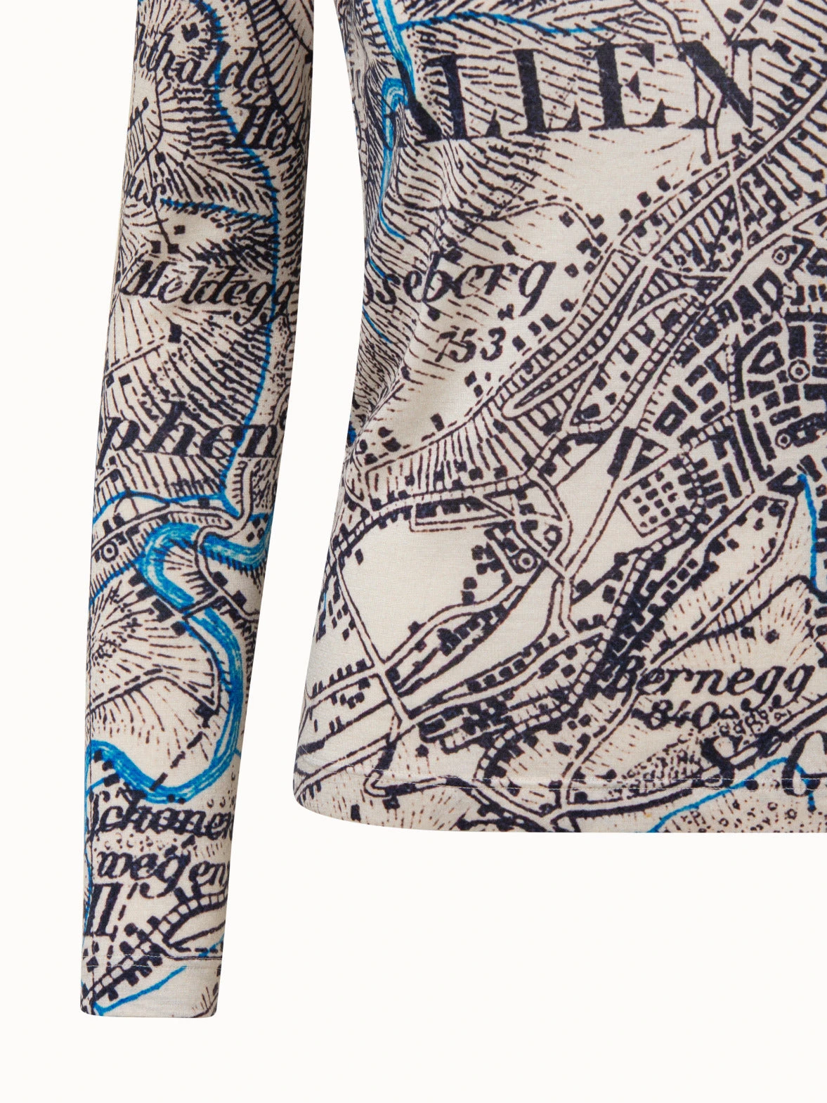 This cashmere silk jersey top is the perfect way to showcase the iconic vintage St. Gallen map print. The ultra thin and luxuriously soft fabrication allows for easy layering.