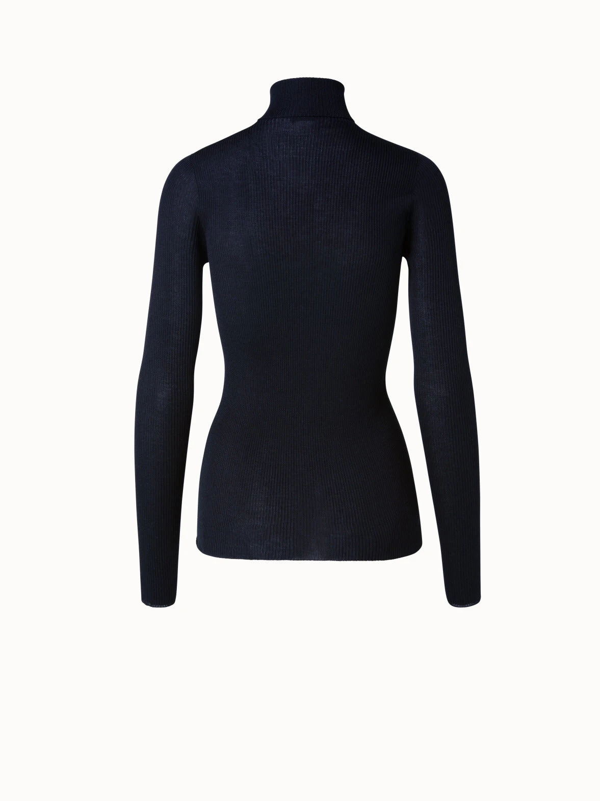 This seamless fine gauge Akris rib knit pullover is created for comfortable wear all year round. Crafted in cashmere and silk, it is soft and soothing against your skin and has an elegant look. It works perfectly as a standalone piece and for layering when temperatures drop.