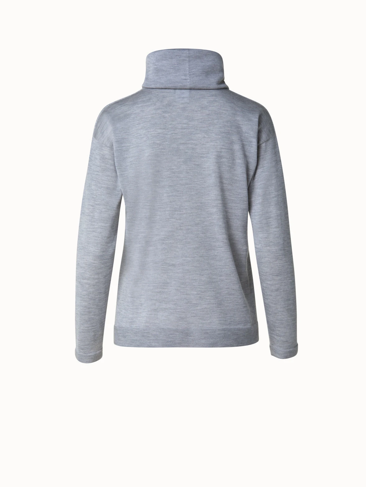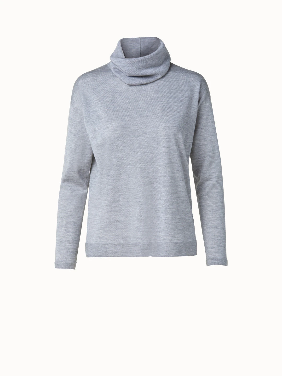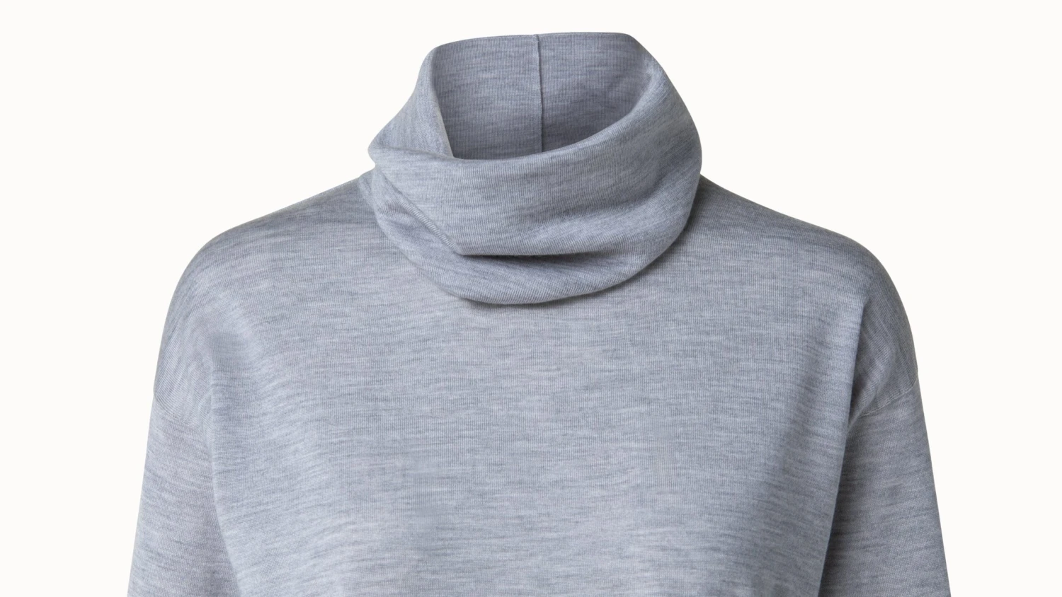 This seamless oversized long sleeve pullover is made up in fine gauge cashmere silk blend. It has a round neck with detachable turtleneck.