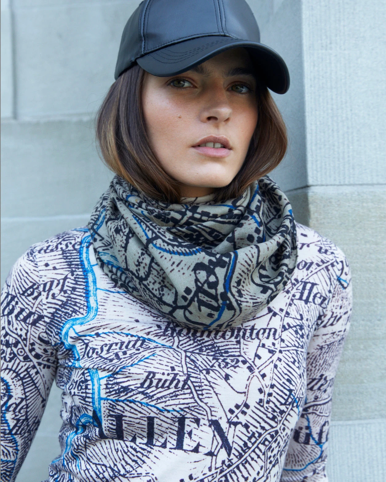 This cashmere silk scarf featuring a vintage map print of St. Gallen is a tribute to our long standing heritage and roots. This ultra-soft, lightweight style is easily worn wrapped around your neck or draped over your shoulders like a shawl. Measures 70x200cm.