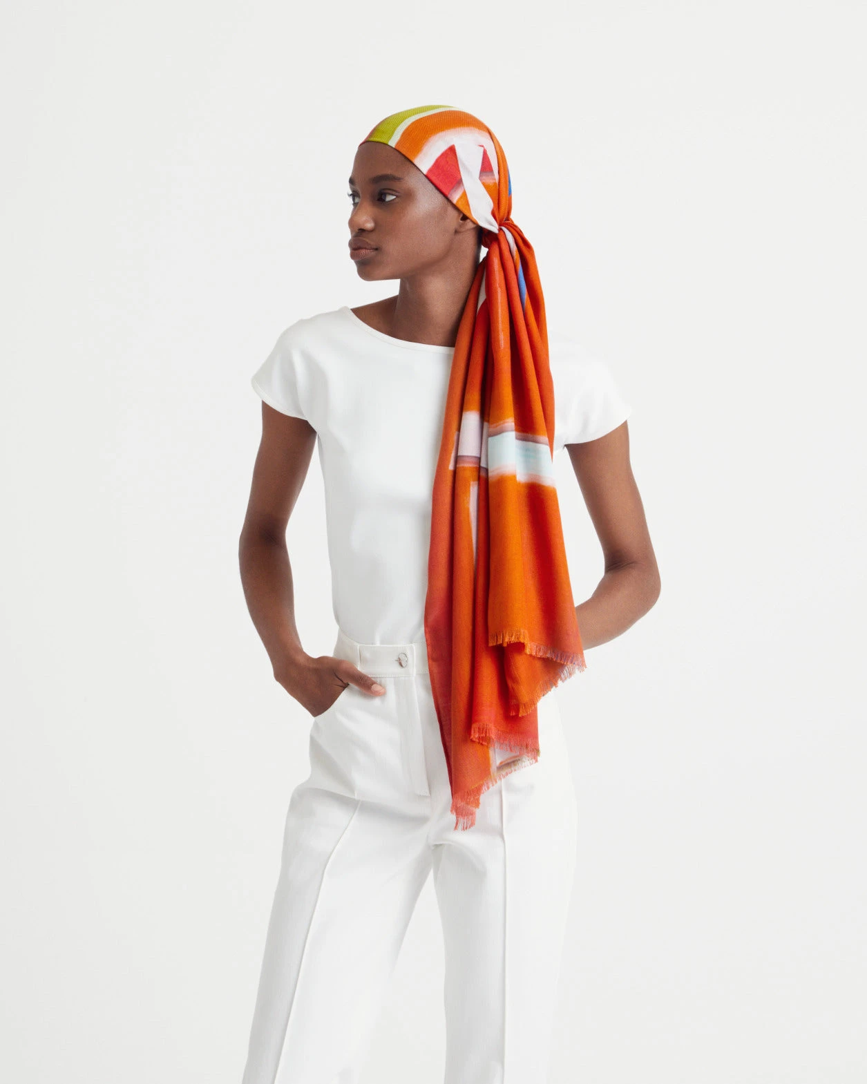 Wrap yourself up in this chic zion print cashmere silk scarf. This eye-catching, geometric print was inspired by German artist Imi Knoebel. Measures 65 x 200 cm / 25.6 x 78.7 in.