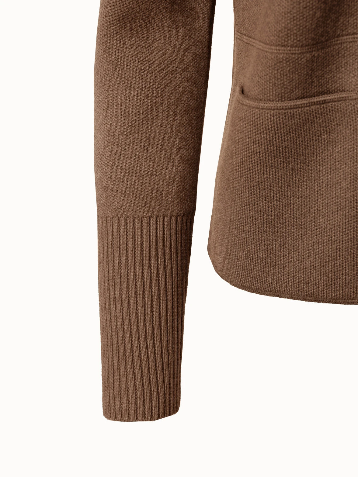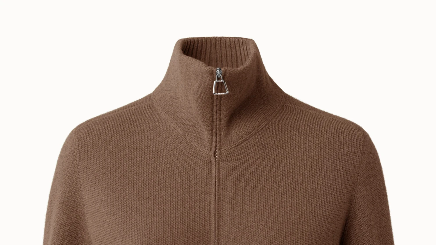 Simple and chic, this knit cashmere cardigan will keep you warm and put together. Features a stand up collar, zip closure, front pockets, and a ribbed collar and cuffs.