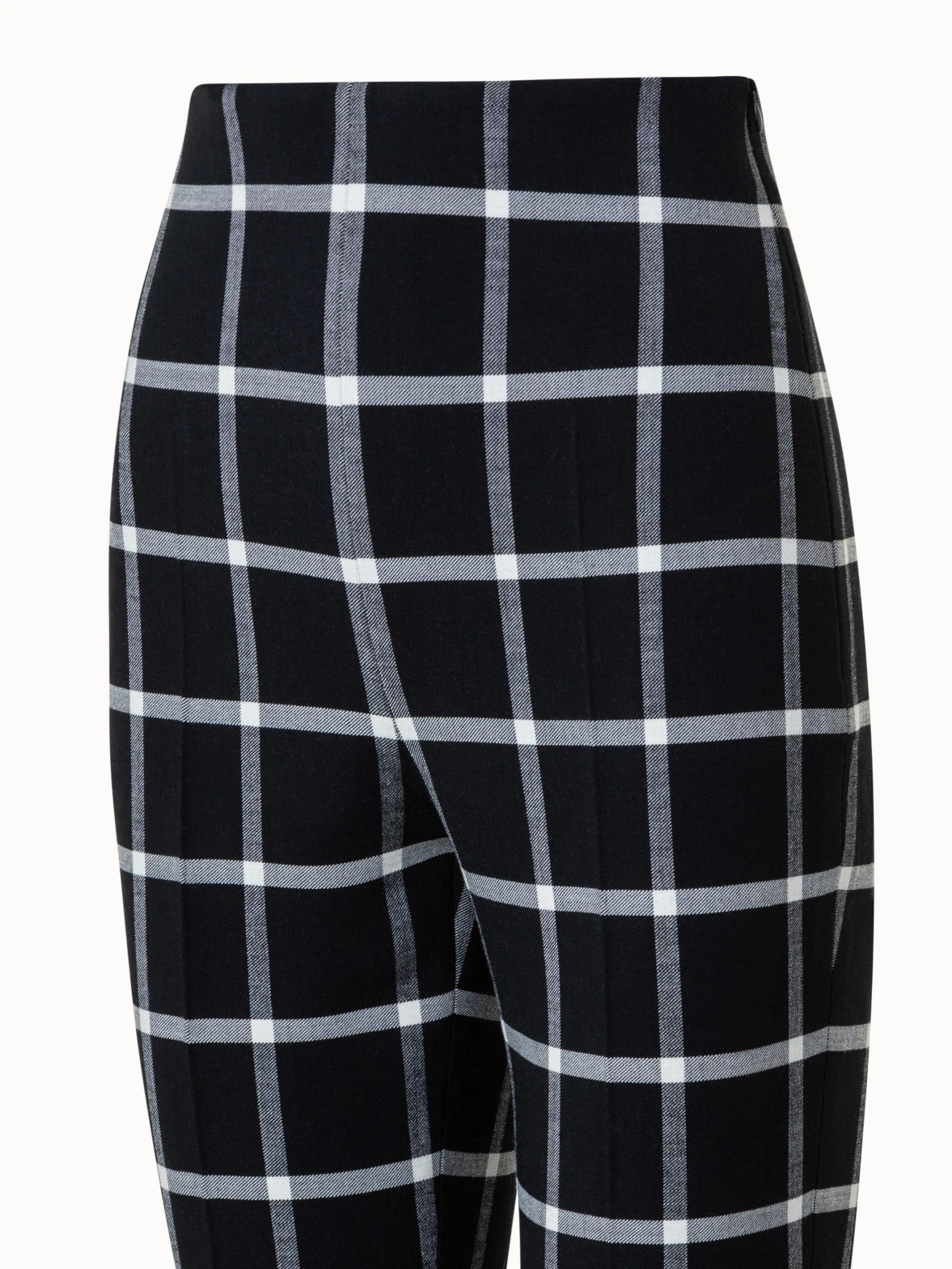 These Akris FARALDA pants are crafted in precious wool stretch double-face with an elegant check for unmatched comfort and versatility throughout the seasons. They are cut with a sleek high waist that closes with a hidden side zip and button. The silhouette is slim at the top and falls into a strong bootcut leg.