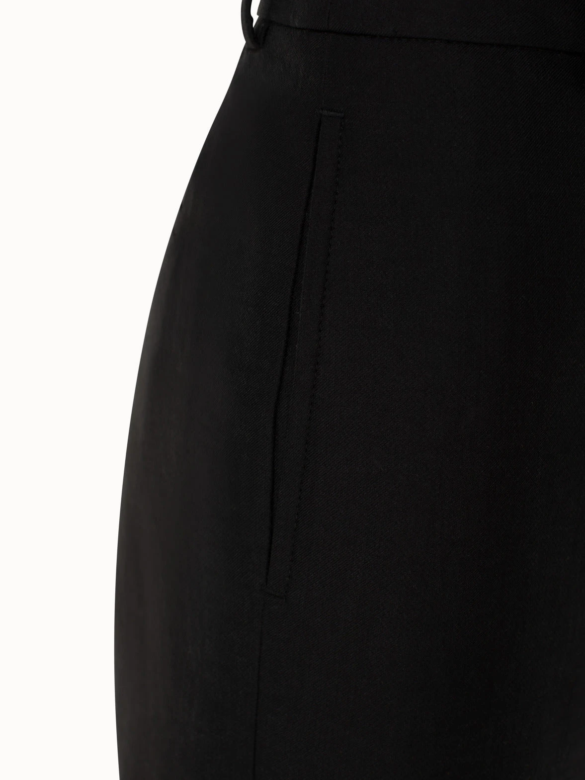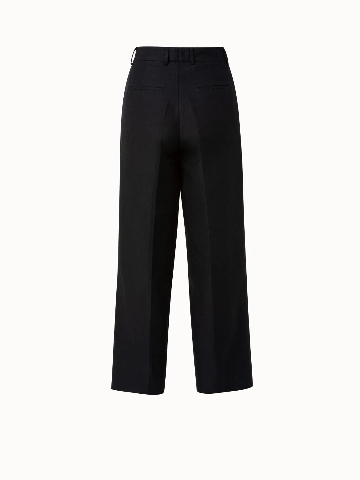 Christelle – comfortable, higher waisted pant with wider, round, straight, cropped leg. Slash pockets and piped pockets in the back