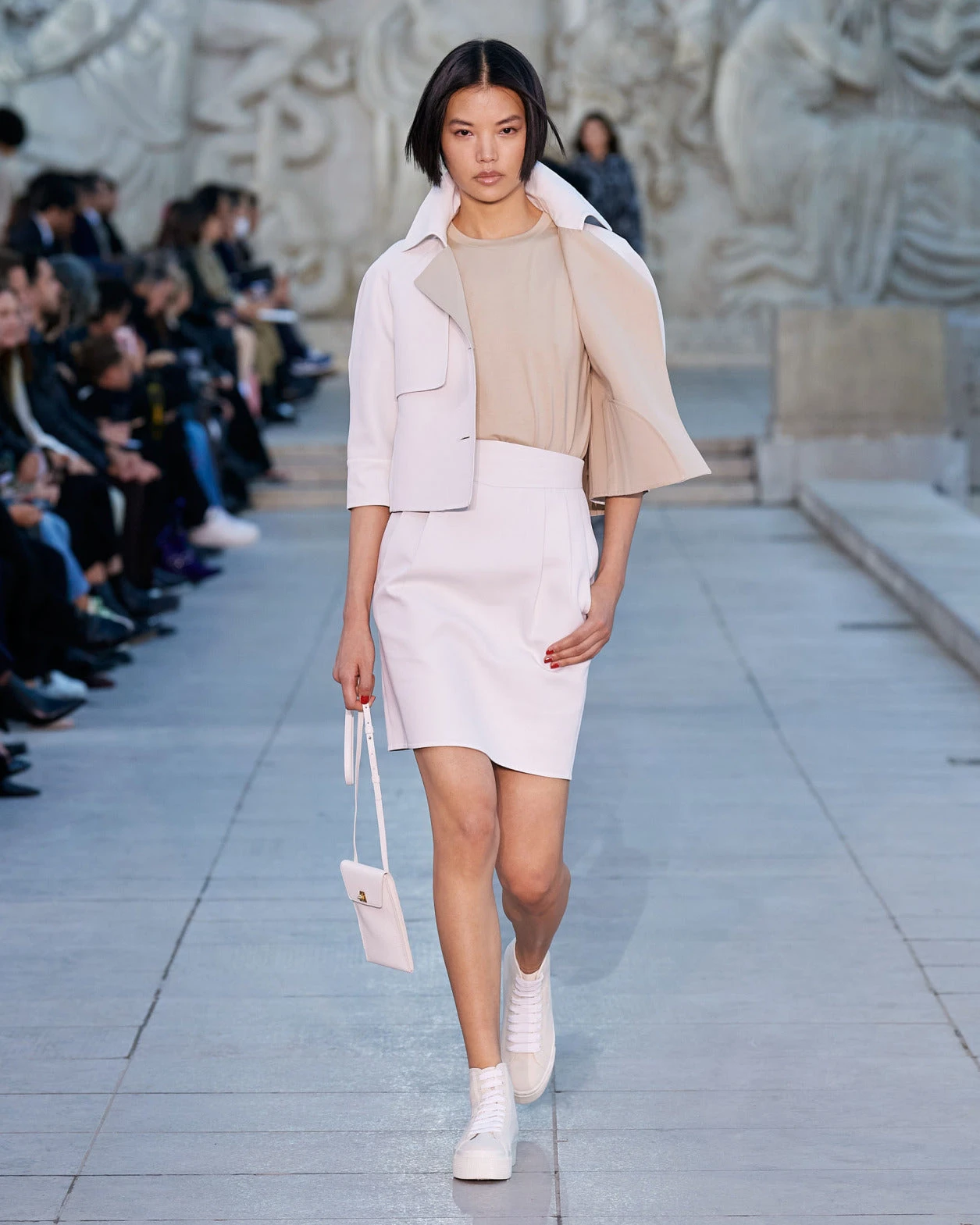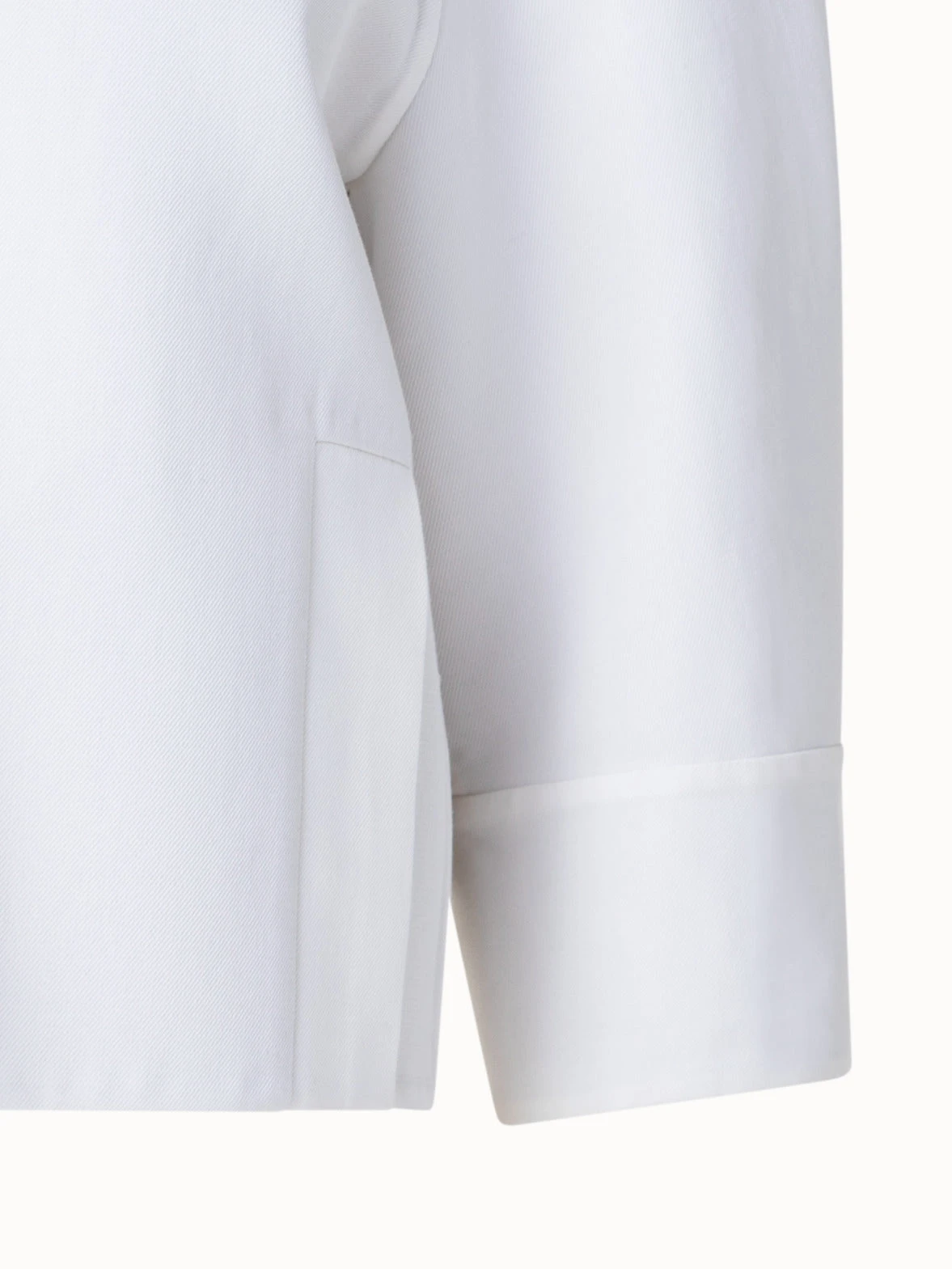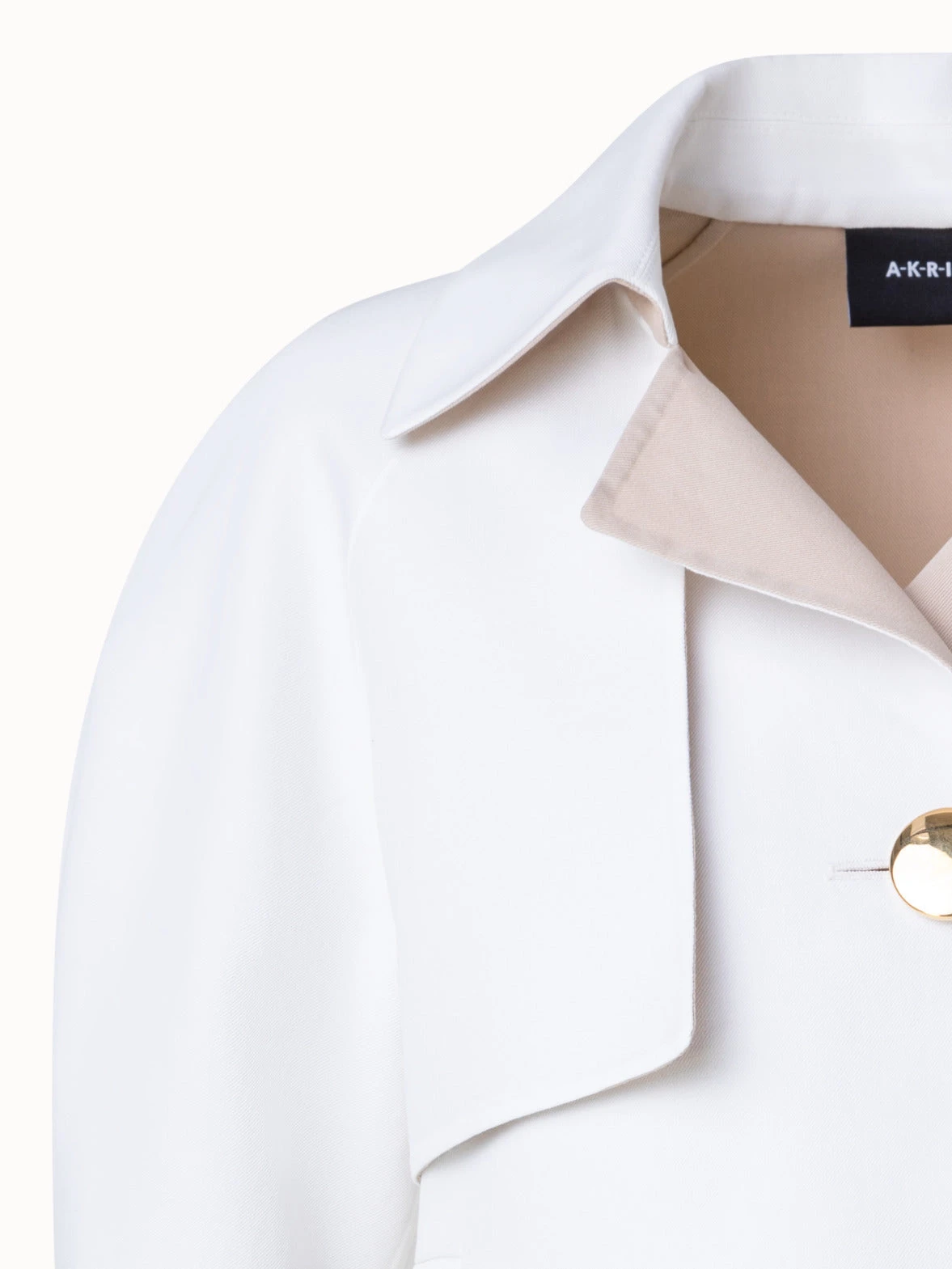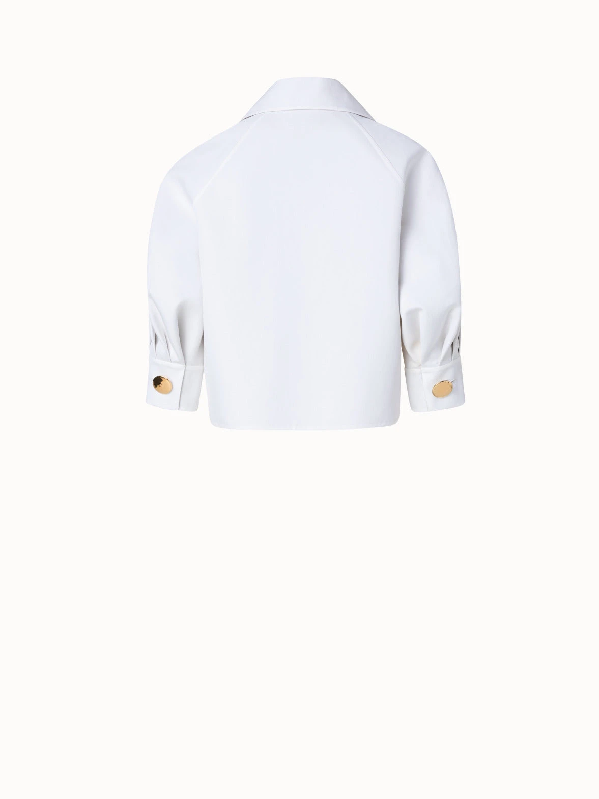 This Akris jacket is crafted in cotton double-face, making it an ideal choice for spring and summer while showcasing the signature craftsmanship of the house. It is cut for a boxy fit that layers perfectly with high-waisted bottoms or a dress. The strong shoulder and golden buttons pay homage to archival designs from the 1980s, which inspired creative director Albert Kriemler for the Spring 2023 collection, celebrating 100 years of Akris.