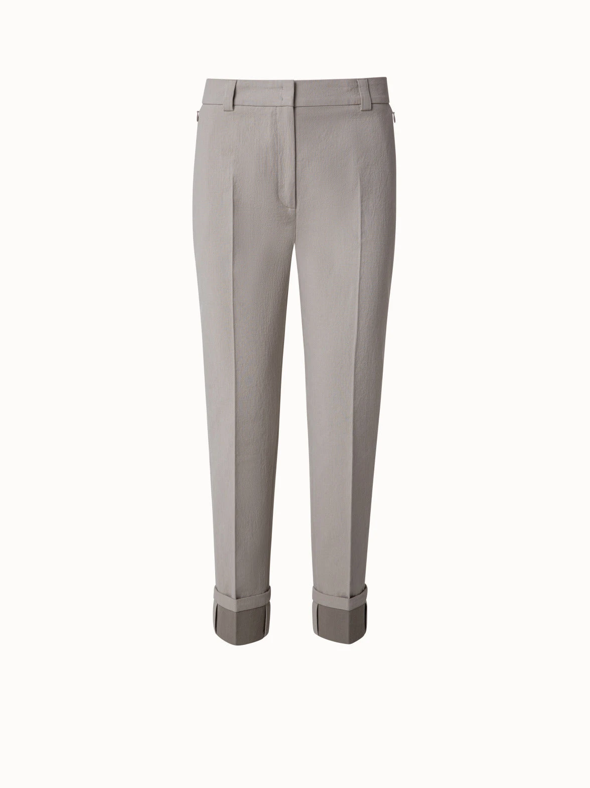 These Akris pants MAXIMA are crafted in cotton double-face for an elegant look and light feel that is comfortable in any weather. They have a tapered fit with a cropped length and cuffs. Hidden zip pockets add functionality while maintaining a sophisticated silhouette.