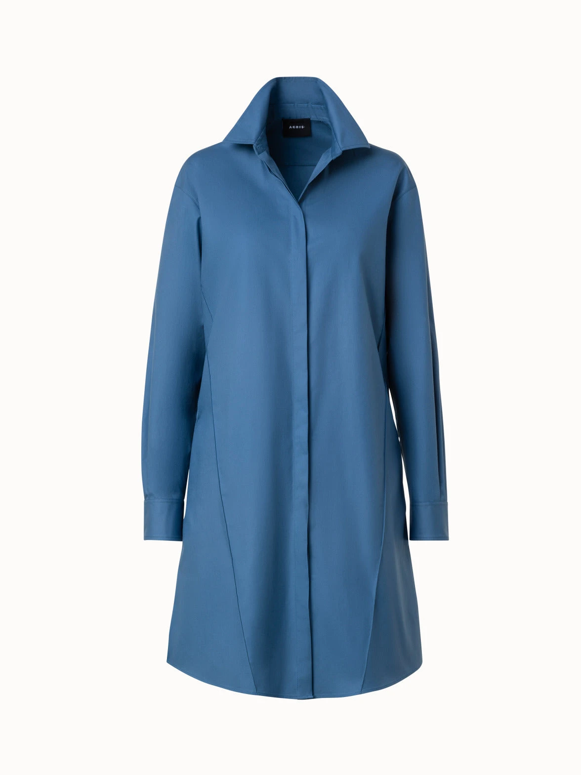 This Akris shirt dress is crafted in a lightweight cotton gabardine, making it a versatile option for many summer occasions. It features a shirt collar and hidden button closure for a sleek look and many styling possibilities. The trapezoid stitching adds a signature Akris touch and a sophisticated structure. To create an airy feel, this dress is cut for an oversized fit.