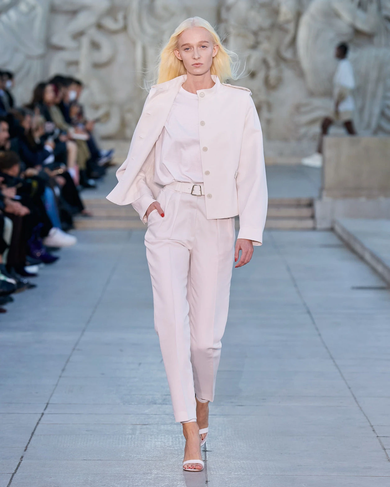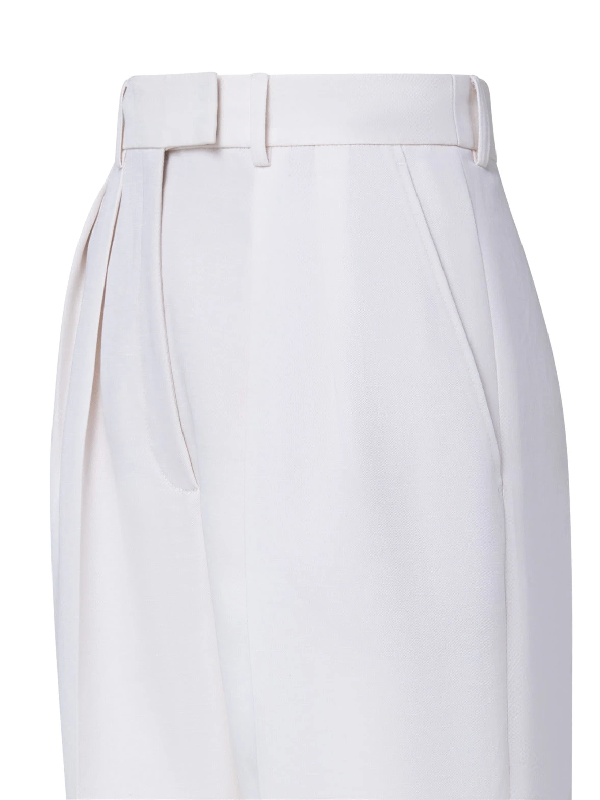 The Akris pants Fidelia are a revival of a vintage silhouette by creative director Albert Kriemler from the 1980s. It features a slightly tapered leg, creating a sleek shape. Waist pleats are a tailoring detail that ensures comfort while adding structure. These Akris Fidelia pants are crafted in cotton and linen, perfect for spring and summer.