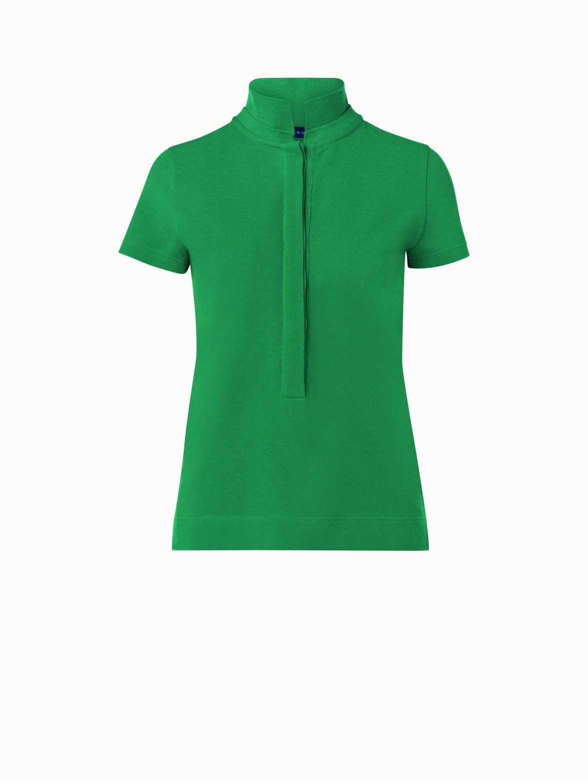 A modern, feminine update to the classic polo shirt, this cotton piqué knit top features a stand-up collar and deep, covered button placket that allows for a variable neckline and creates the impression of a shirt when tucked into high-waisted pants or a skirt. This Akris top is cut for a fitted silhouette.