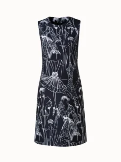 Displaying sketches by creative director Albert Kriemler, the Croquis print showcased on this sheath dress of Akris Spring 2023 tells a very personal story. Witty and charming, it was designed by his team as an anniversary surprise.