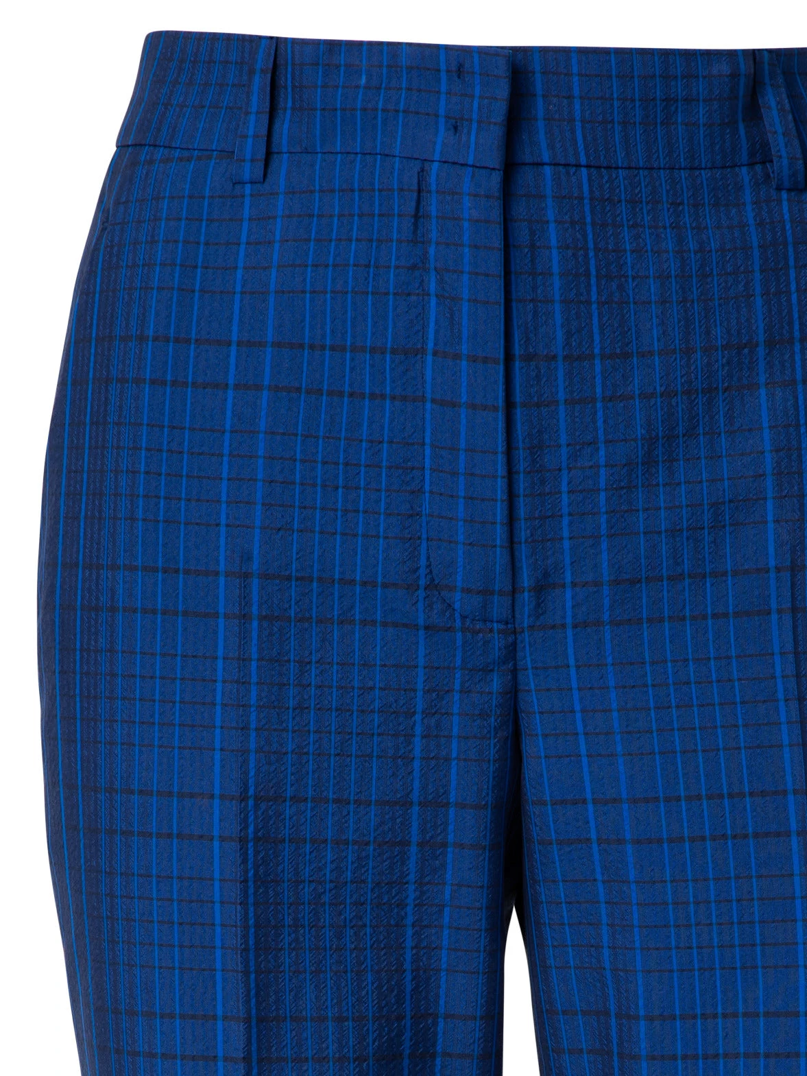 These Akris FLAVIN pants are crafted in a lightweight cotton-silk-seersucker with a subtle tonal check pattern. These tapered leg pants are cut for an ankle length. They feature a front closure and three pockets.