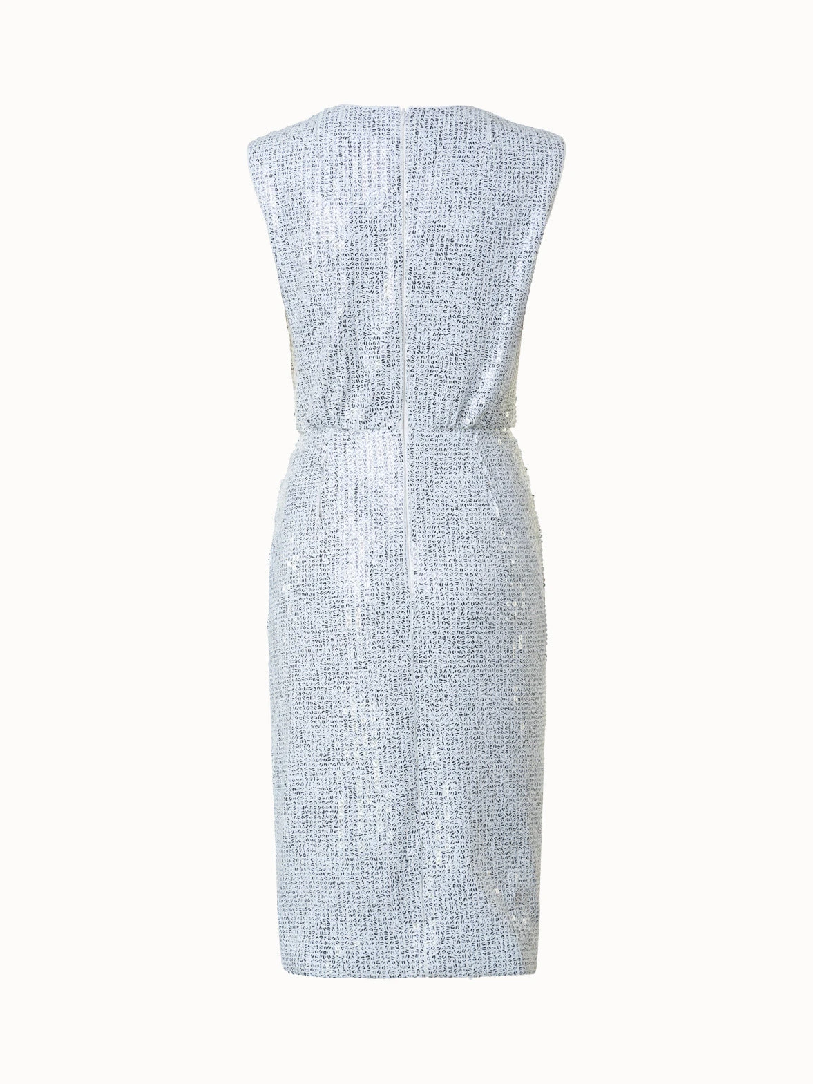 This Akris dress will make you stand out. Crafted in two-tone sequins on tulle stretch, it creates a unique look while ensuring comfort on any occasion. Shoulder pads showcase the vintage inspiration of the Spring 2023 collection and create a strong look. The deep V-neck and skirt with asymmetrical overlayer create a feminine silhouette.
