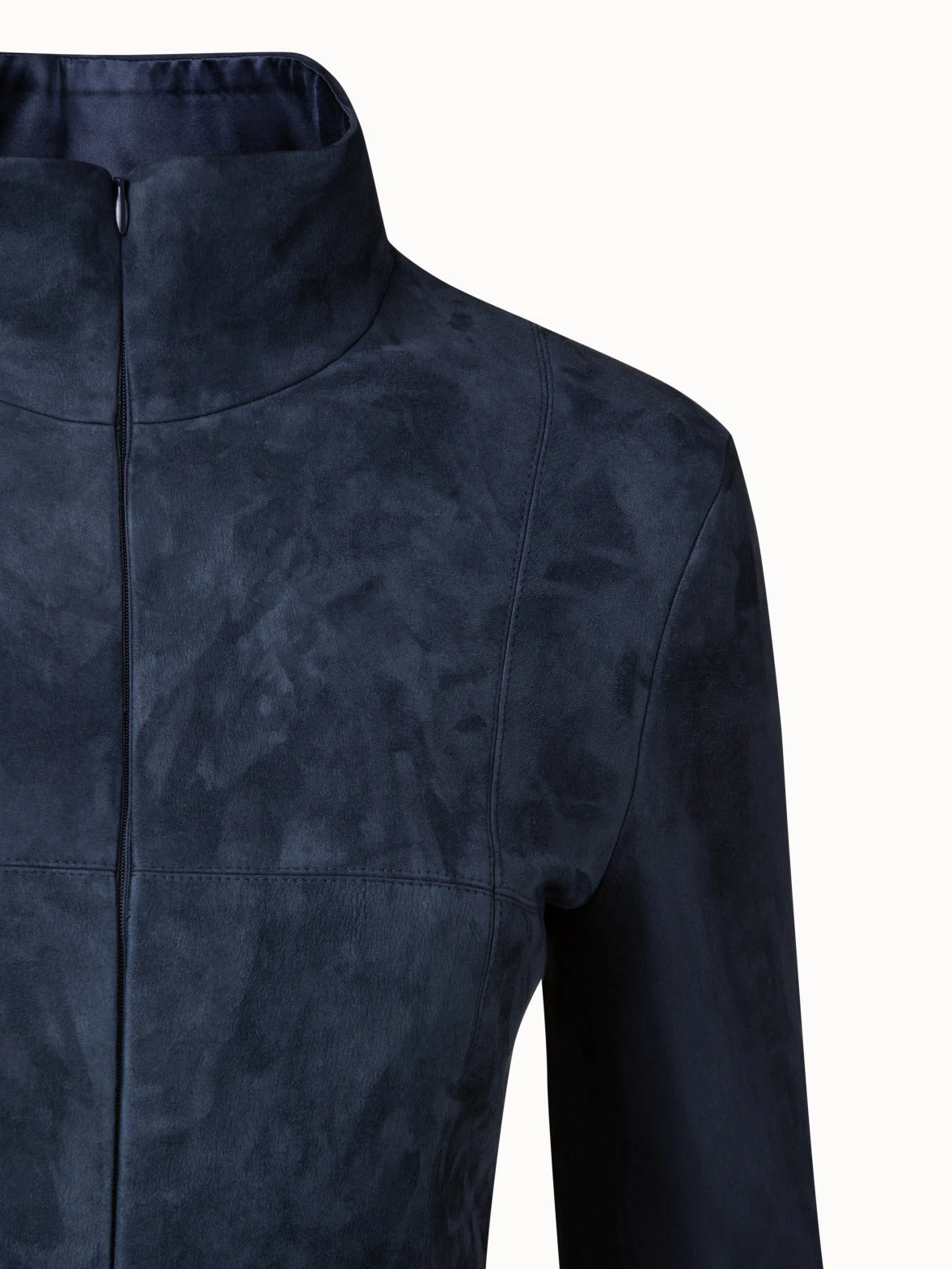 This Akris lamb stretch suede sheath dress is the most luxurious version of the iconic silhouette yet. It features a front zip that creates a versatile neckline and a mock neck. The long sleeves and knee-length make it ideal for fall and winter.