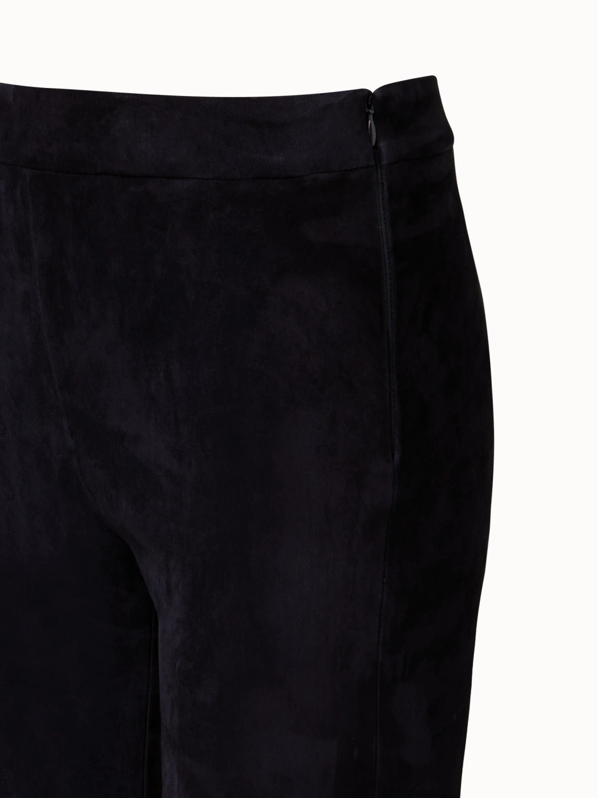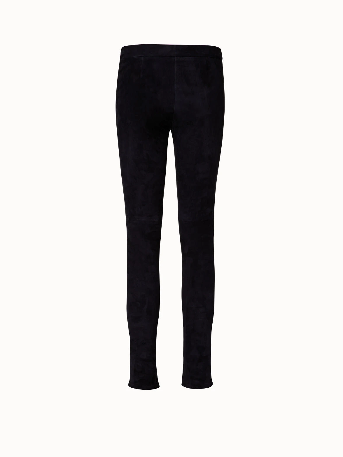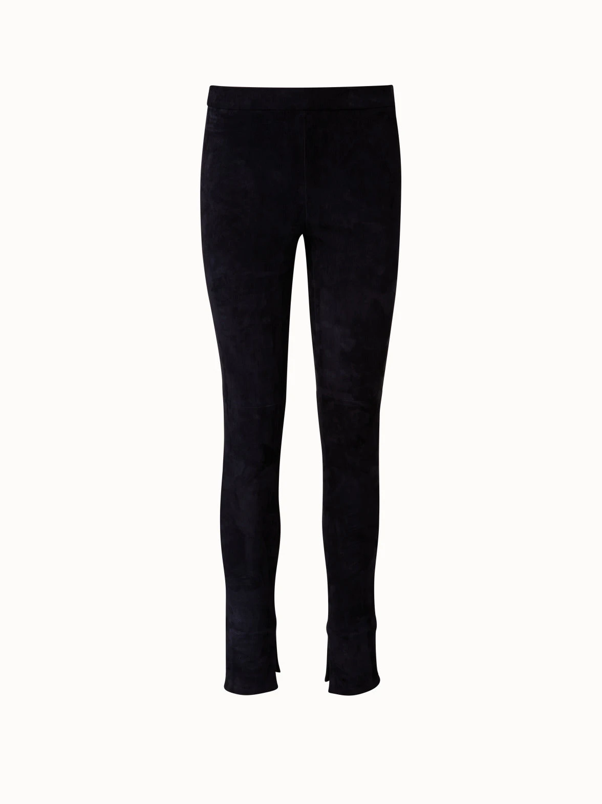 These Akris Fria pants are crafted in luxurious lamb suede. They are cut for a skinny fit and feature a slit at the hem. The hidden side zip closure maintains the sleek silhouette.