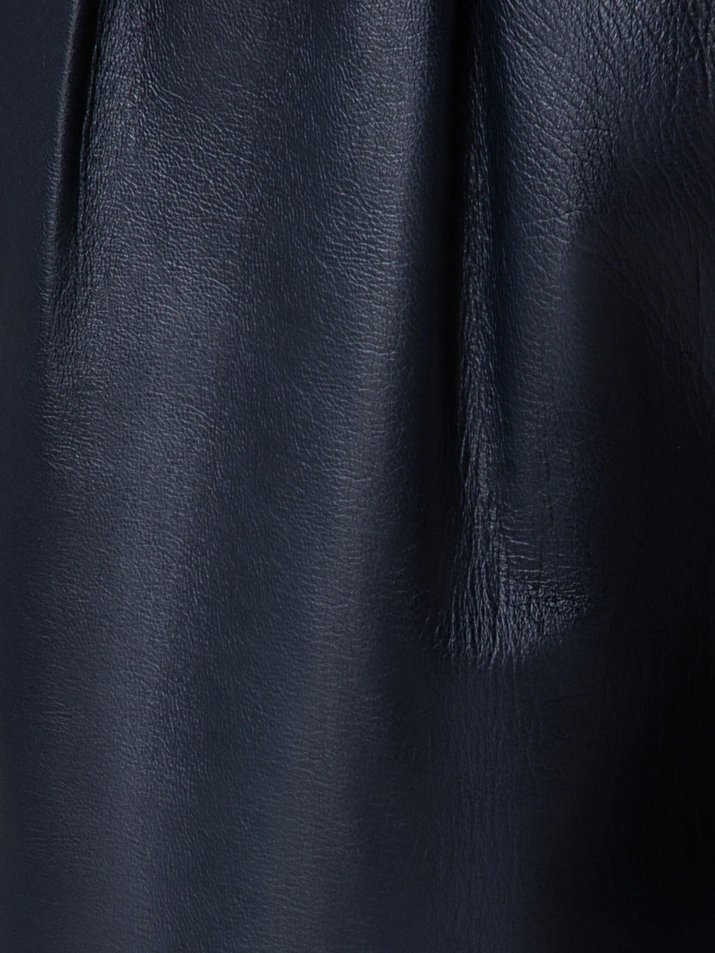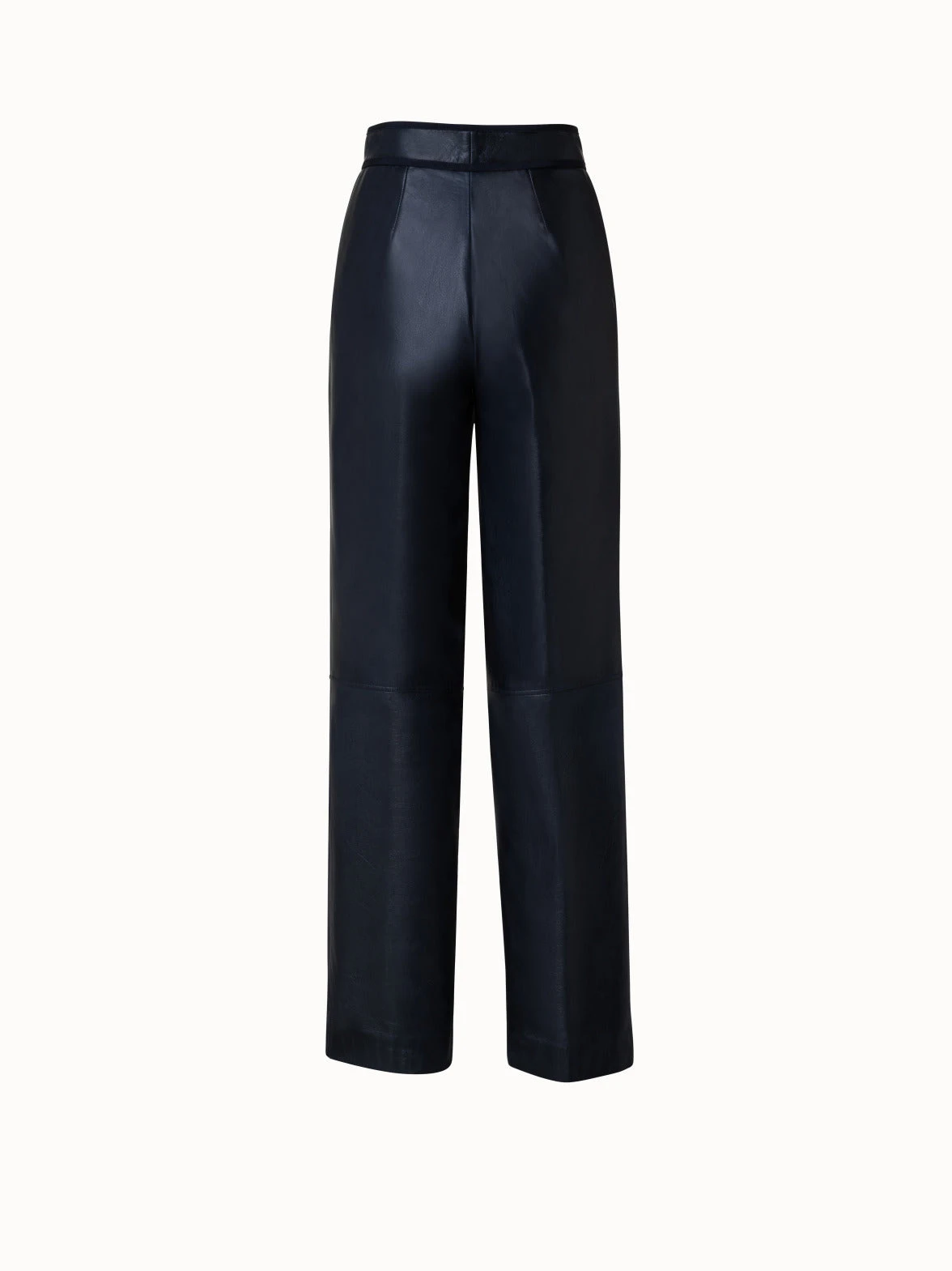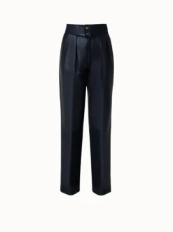 The Akris pants Fini are a revival of a vintage silhouette by creative director Albert Kriemler from the 1980s. The straight-leg silhouette features a high waist with front pleats and a yoke that add structure and a unique look. The grosgrain trim completes this masterfully tailored style. These Akris pants Fini are crafted in soft Nappa lambskin leather that creates a luxurious look and feel.