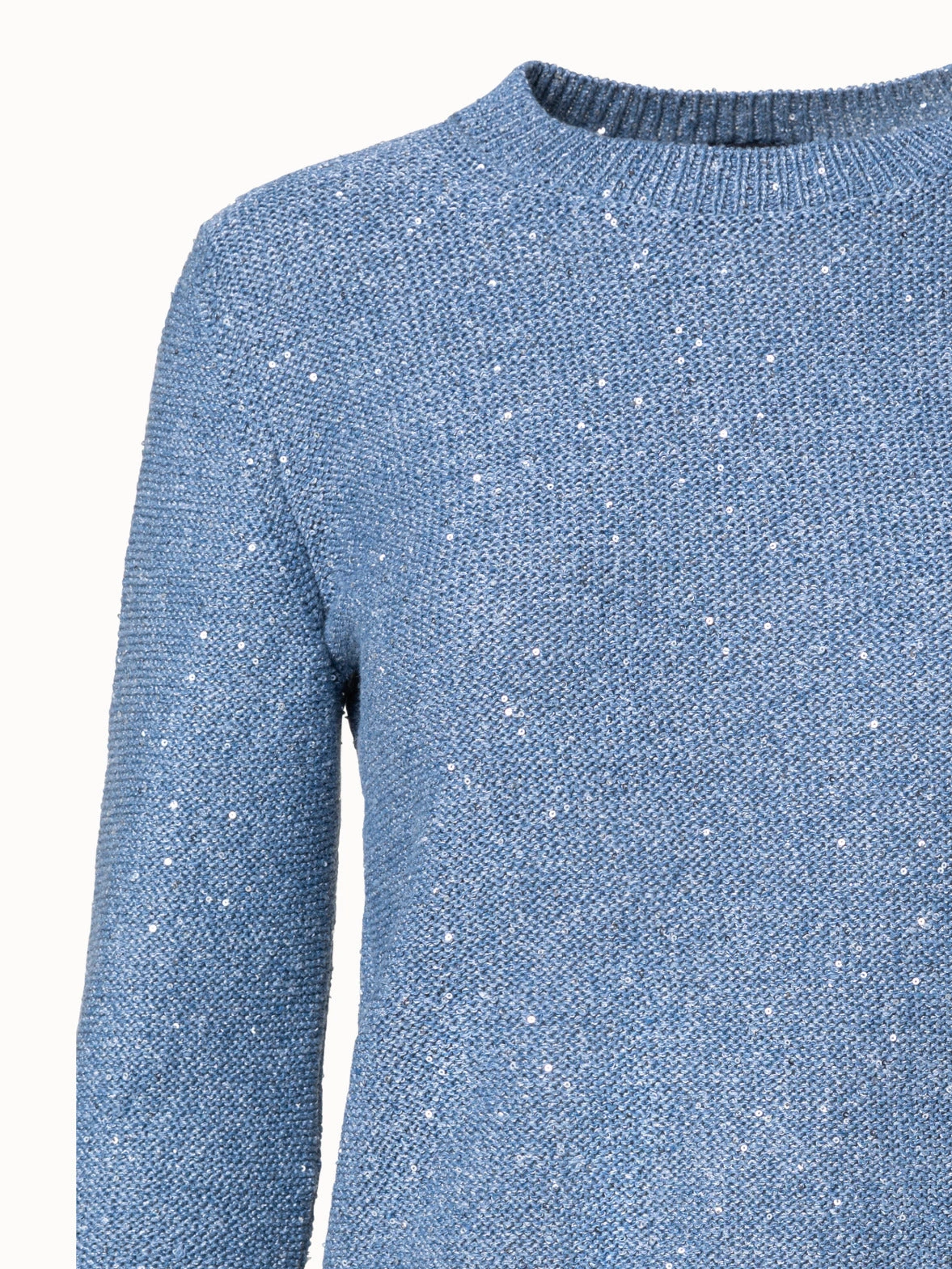 Fine sequins add a subtle shine to this cotton linen blend pullover, creating an understated look that stands out at a second glance. Cut for a regular fit with a round neck and long sleeves.