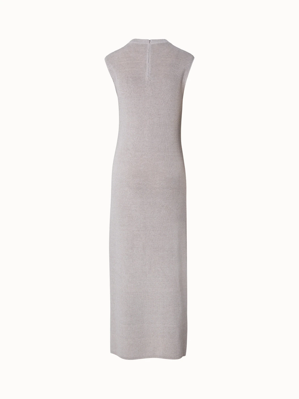 This Akris midi dress is crafted in a linen cotton blend knit, creating a sleek yet comfortable silhouette perfect for everything from a day at the beach to spring and summer occasions. The sleeveless silhouette features a side slit and a back zip.