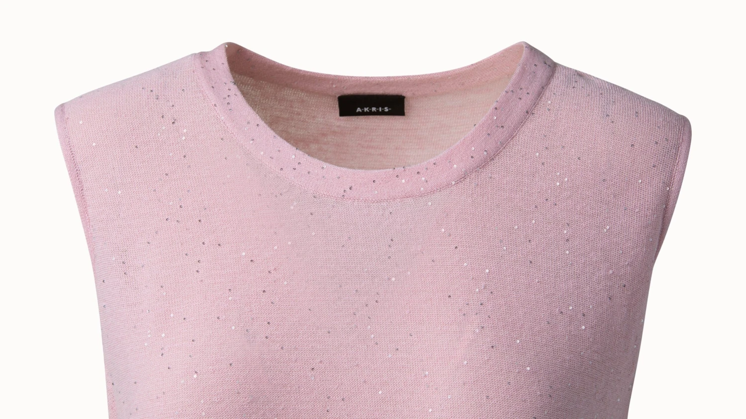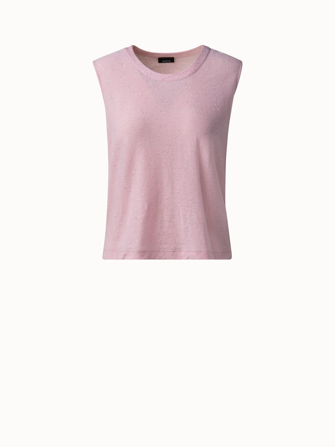 Crafted from soft linen, this Akris tank top with round neck is a luxurious base layer for any Spring and Summer wardrobe. Simple in design and beautifully made with fine sequins, styling options are infinite. Wear it with neutral pants to emphasize the shade.