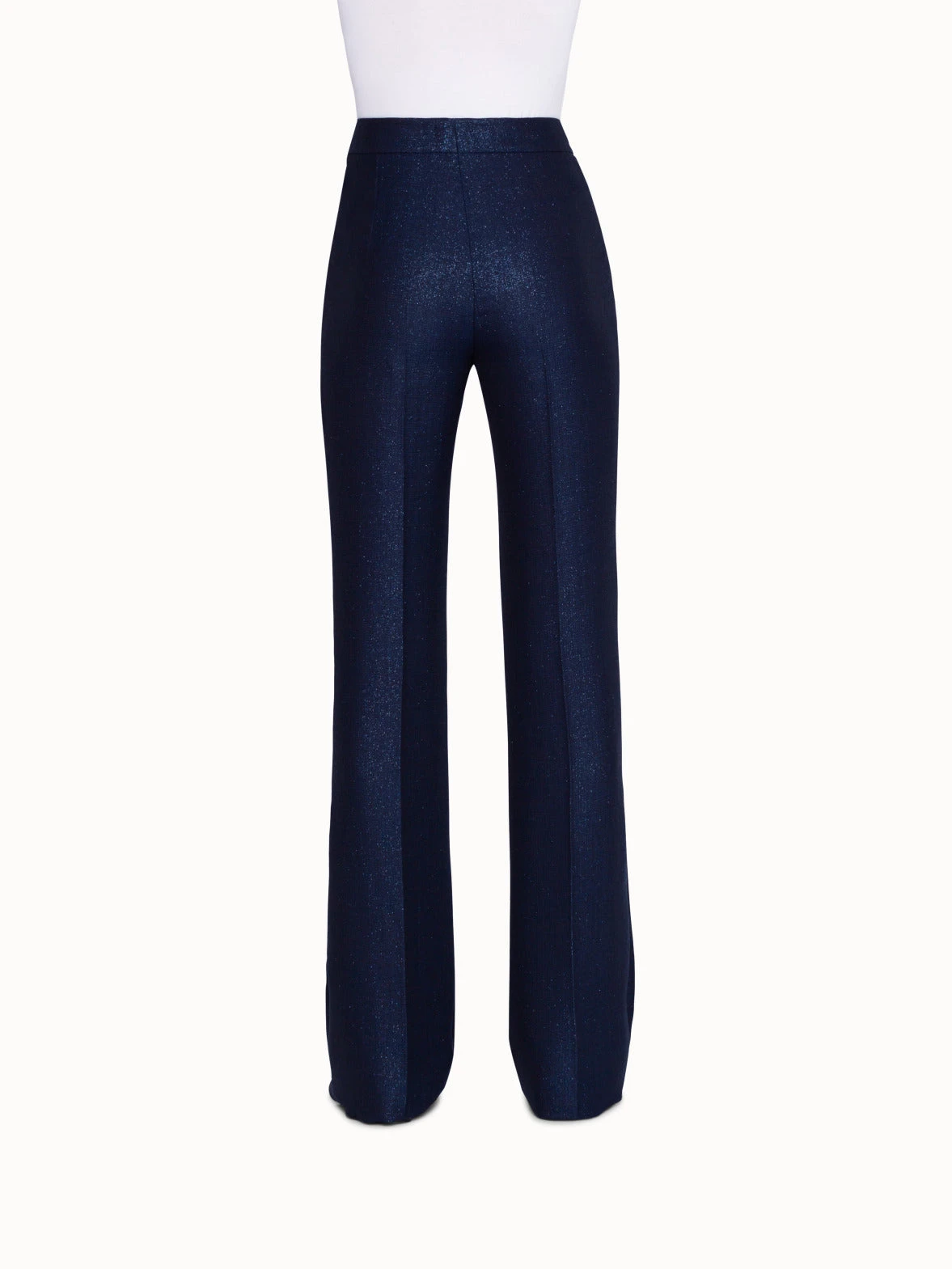 Elongate your legs and slim your silhouette with these trendy yet demure high-waisted bootcut pants. Crafted from the finest double-face lurex wool, these pants have a slight metallic sheen to them. Our FARIDA pant features a front closure and zip pockets, that allow you to change up your look slightly.