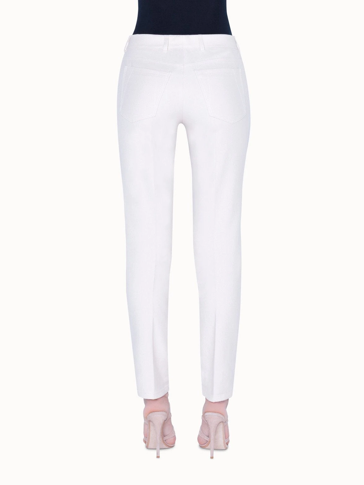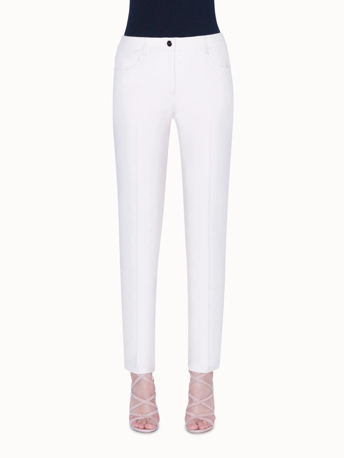 MAGDA slim leg five-pocket pants with front closure.