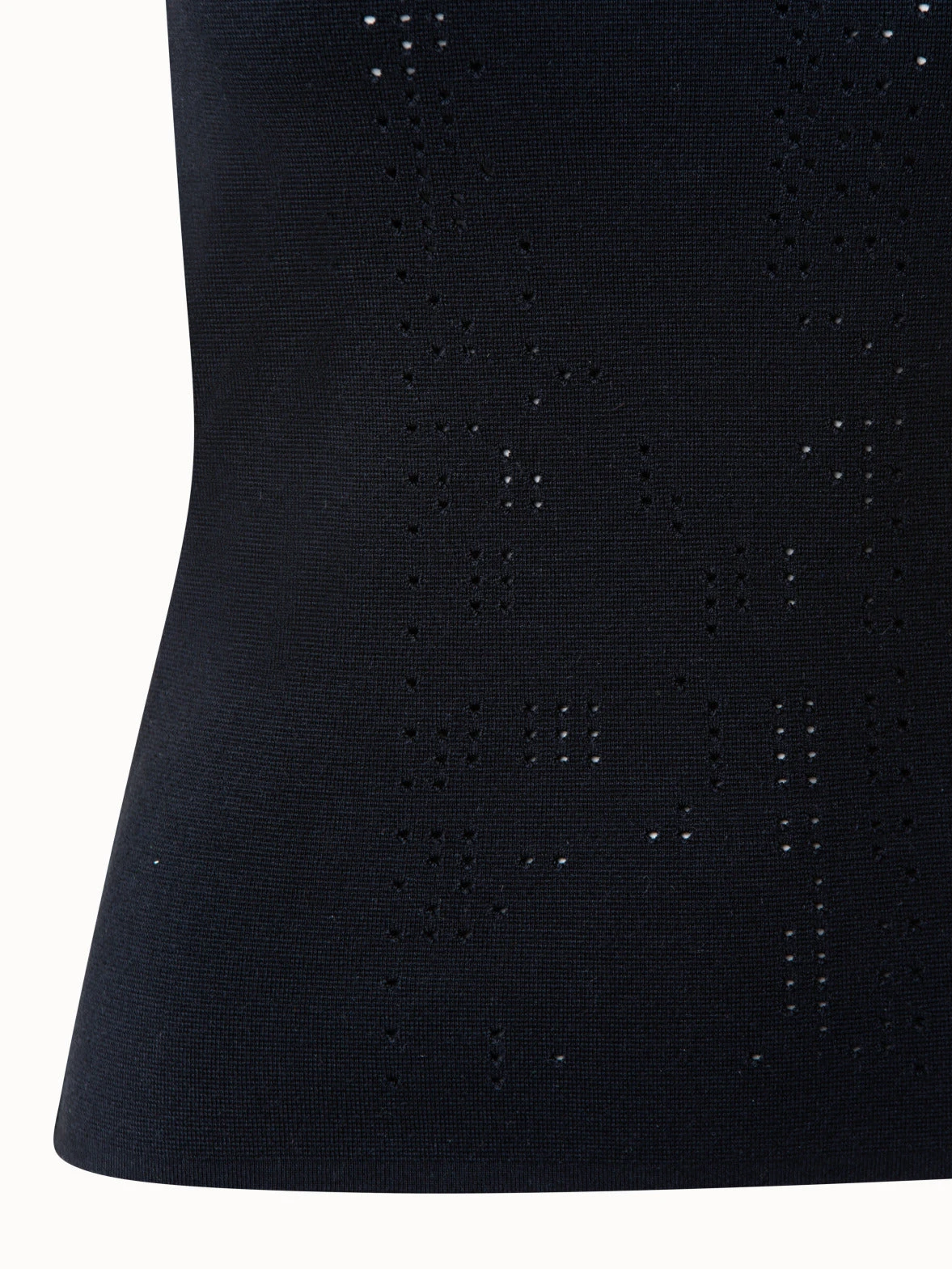 This fitted knit tank in wool silk stretch features a subtle punchcard ajouré detail down the front. The round neck, sleeveless style is perfect for layering under a jacket, and the ajouré detail adds a simple touch of novelty.