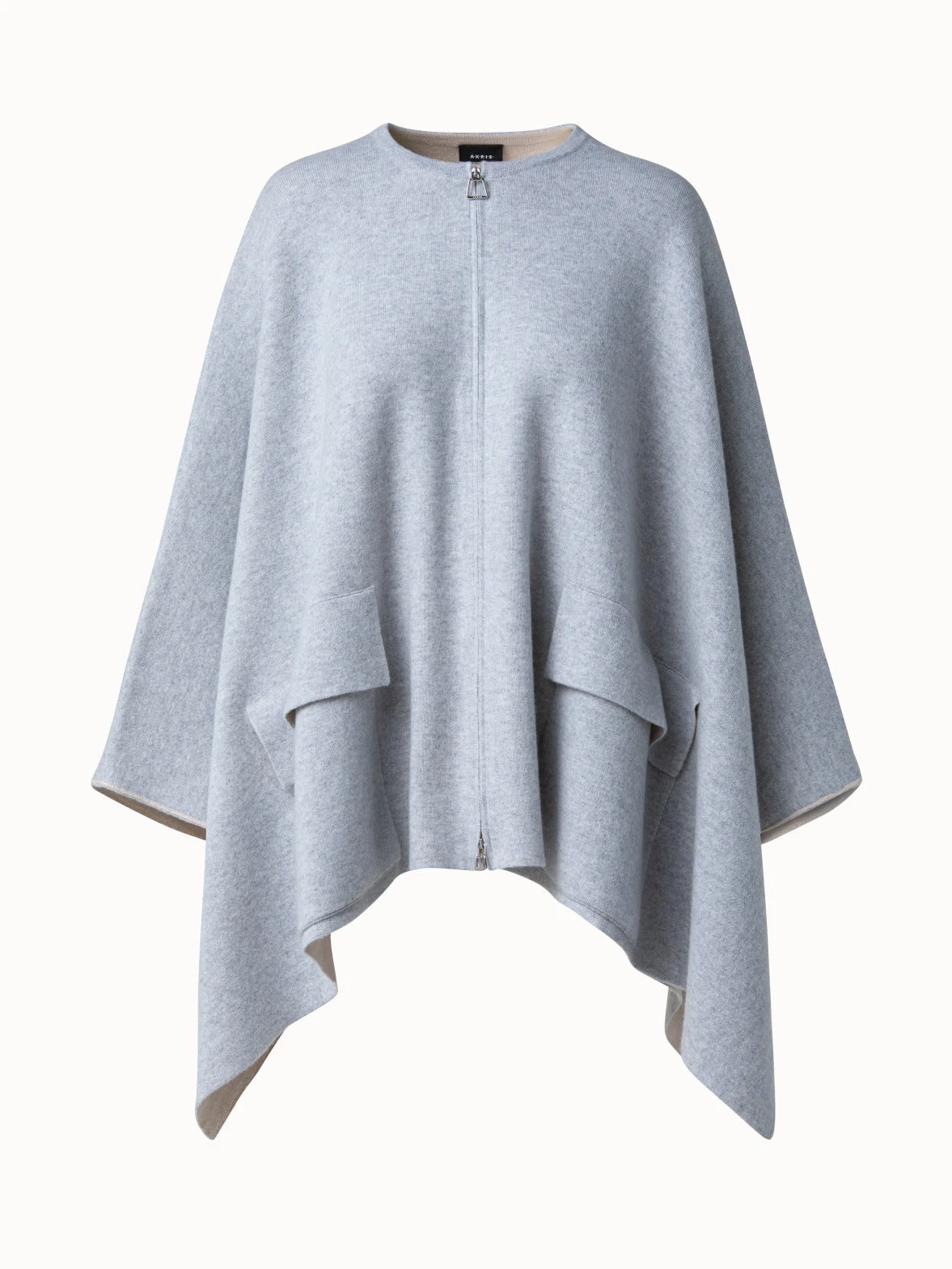 Bi-color reversible cape in double face cashmere. It features round neck full length zip closure and patch pockets. It is available in one size.