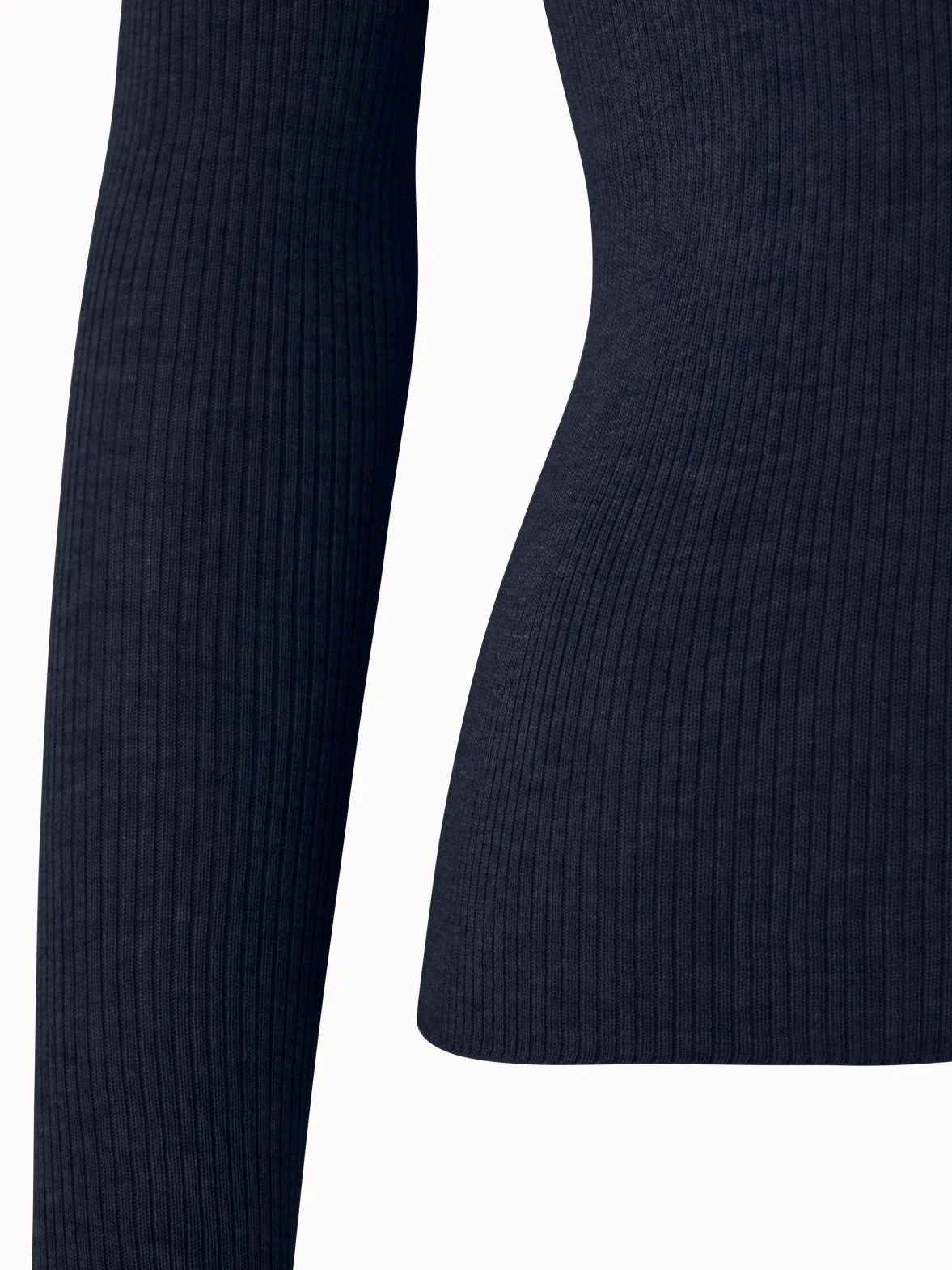 Crafted from a naturally super fine silk cotton blend, this seamless rib knit makes for the perfect layering piece. Pair with a tailored jacket for a complete look.
