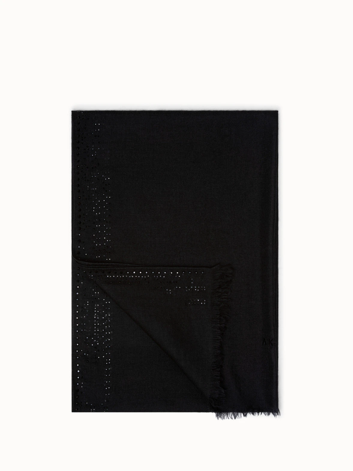 This elegant evening wrap scarf in cashmere silk is decorated with punch card sequin embellishment. Measures 70x200cm.