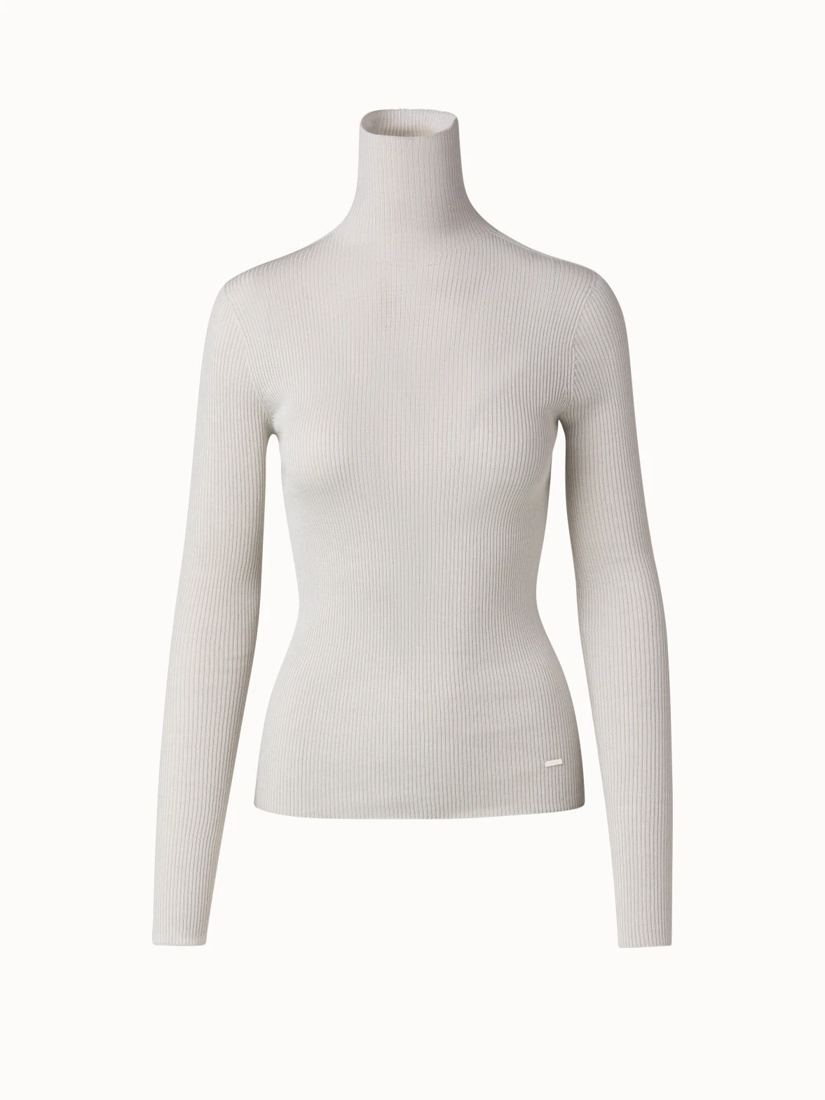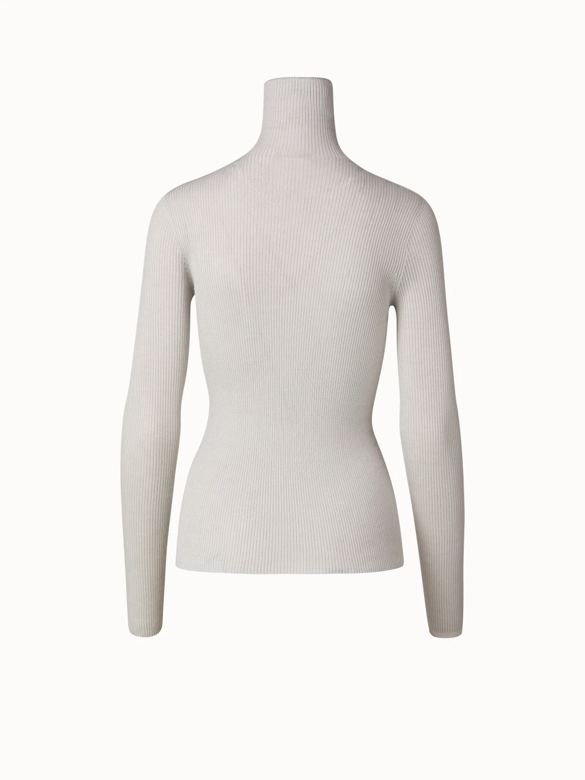 This seamless fine gauge Akris rib knit pullover is created for comfortable wear all year round. Crafted in cashmere and silk, it is soft and soothing against your skin and has an elegant look. It works perfectly as a standalone piece and for layering when temperatures drop.