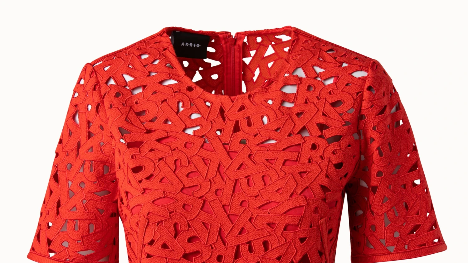 A playful wink to the Akris logo, our second glance embroidery is showcased on this classic sheath dress style. The round neck, cap sleeves, and slight a-line skirt create a feminine silhouette.