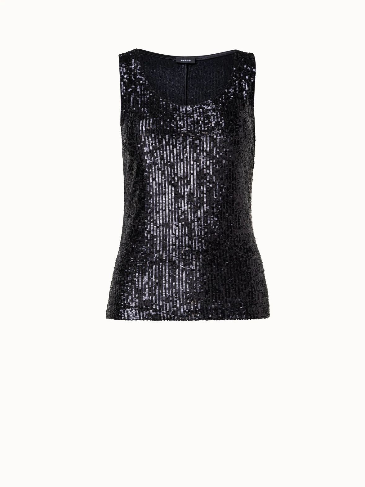 This shimmering Akris tank top is crafted in sequins on soft jersey for a stand-out look without sacrificing the comfort that will make you feel your best at all upcoming festivities. Cut for a slim fit with an elegant scoop neck that makes it perfect as an underpinning or stand-alone top.