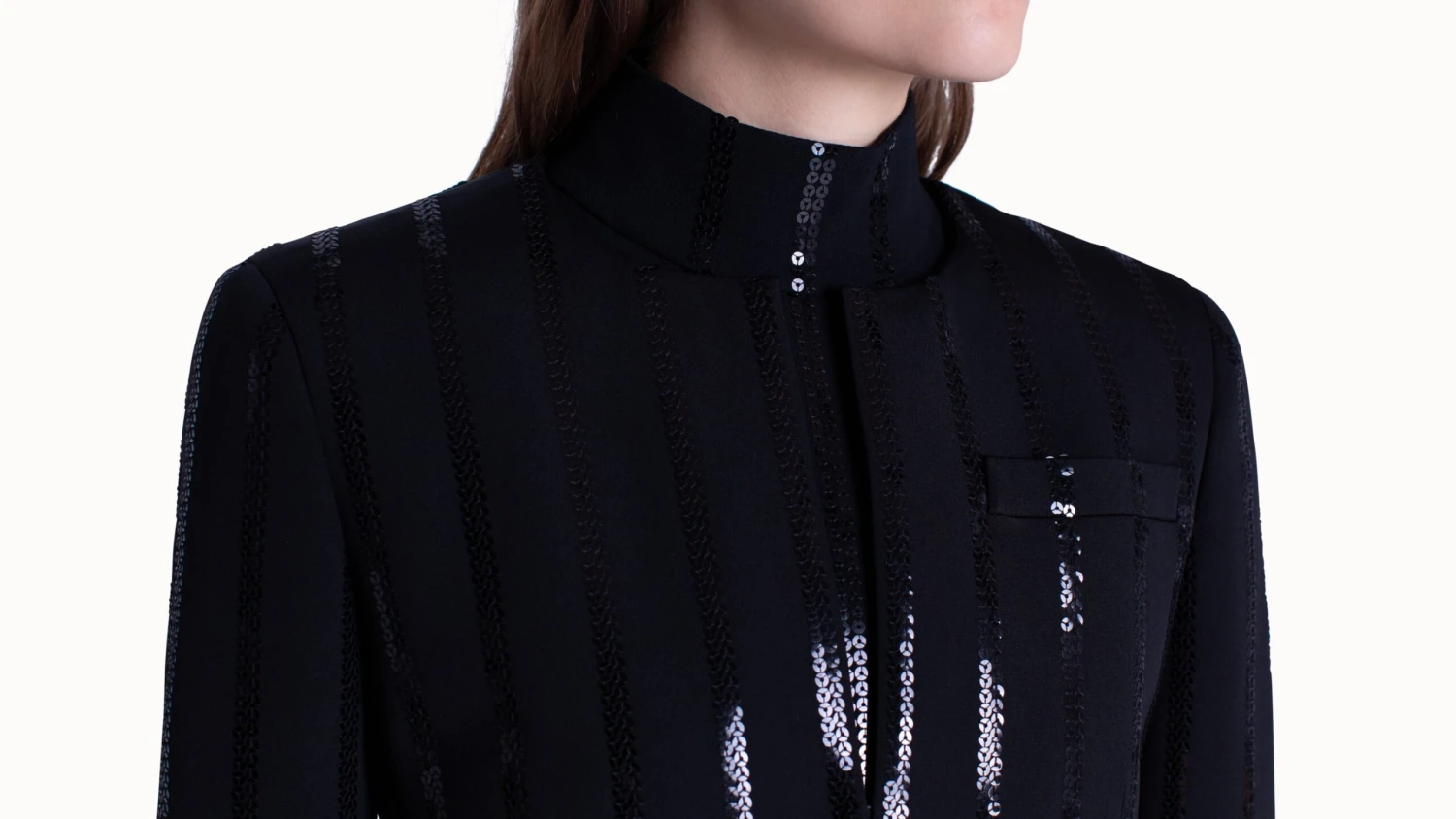 Made from silk stretch and embellished with sequin stripes, this jacket will keep you comfortable and stylish.