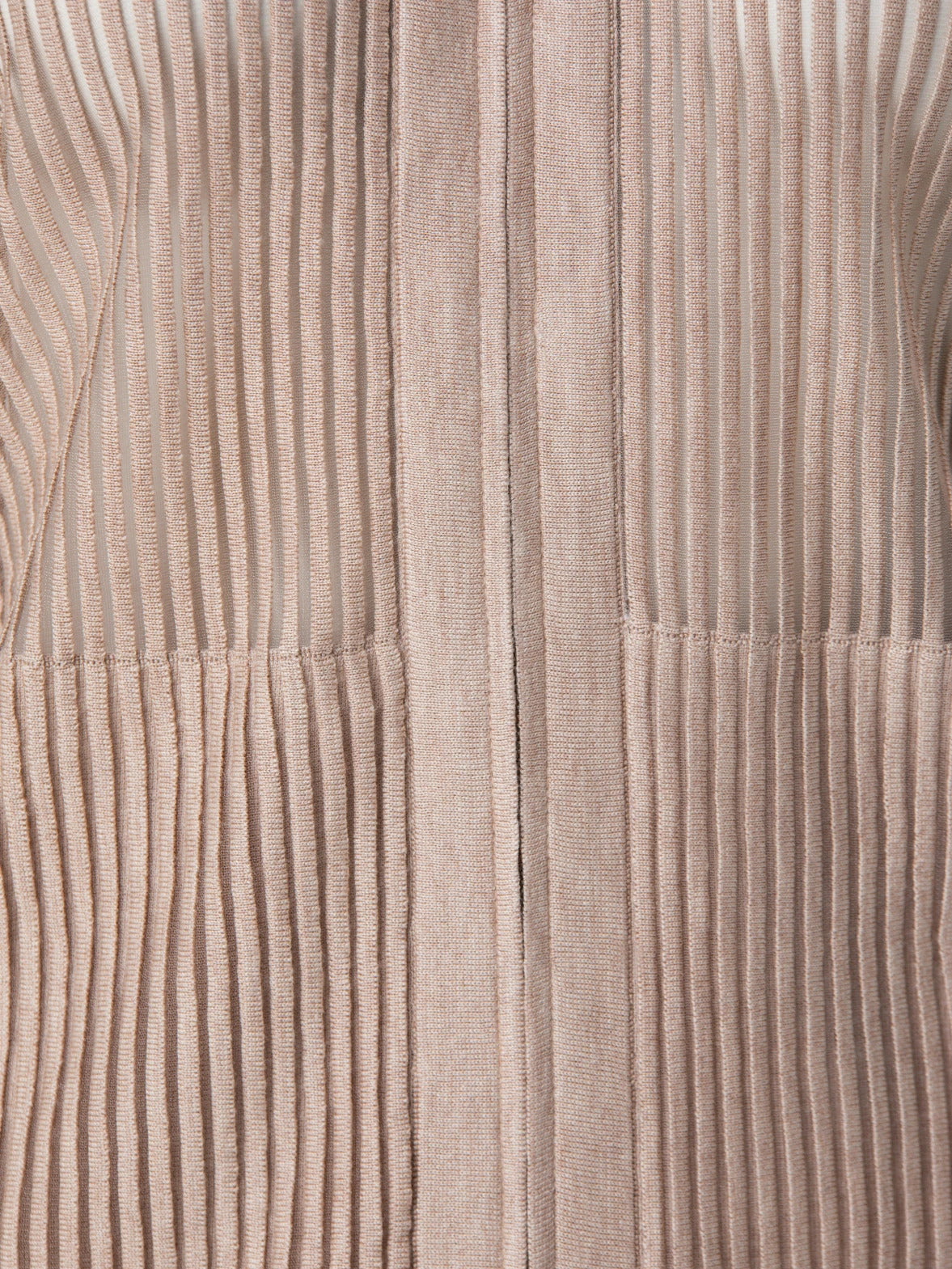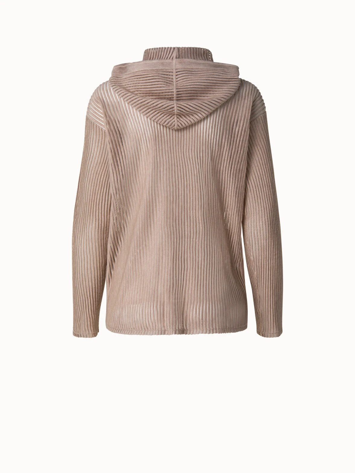 Smart and sporty knit hoodie in silk cotton transparent structured lines. It has front zip closure and long sleeve.
