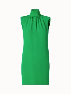 This short Akris dress is a modern silhouette for special occasions and is sure to make you stand out. Crafted in silk crêpe, it is perfect for spring and summer. The stand-up collar with front pleats and deep draped back decollete create an exceptionally elegant and feminine look.
