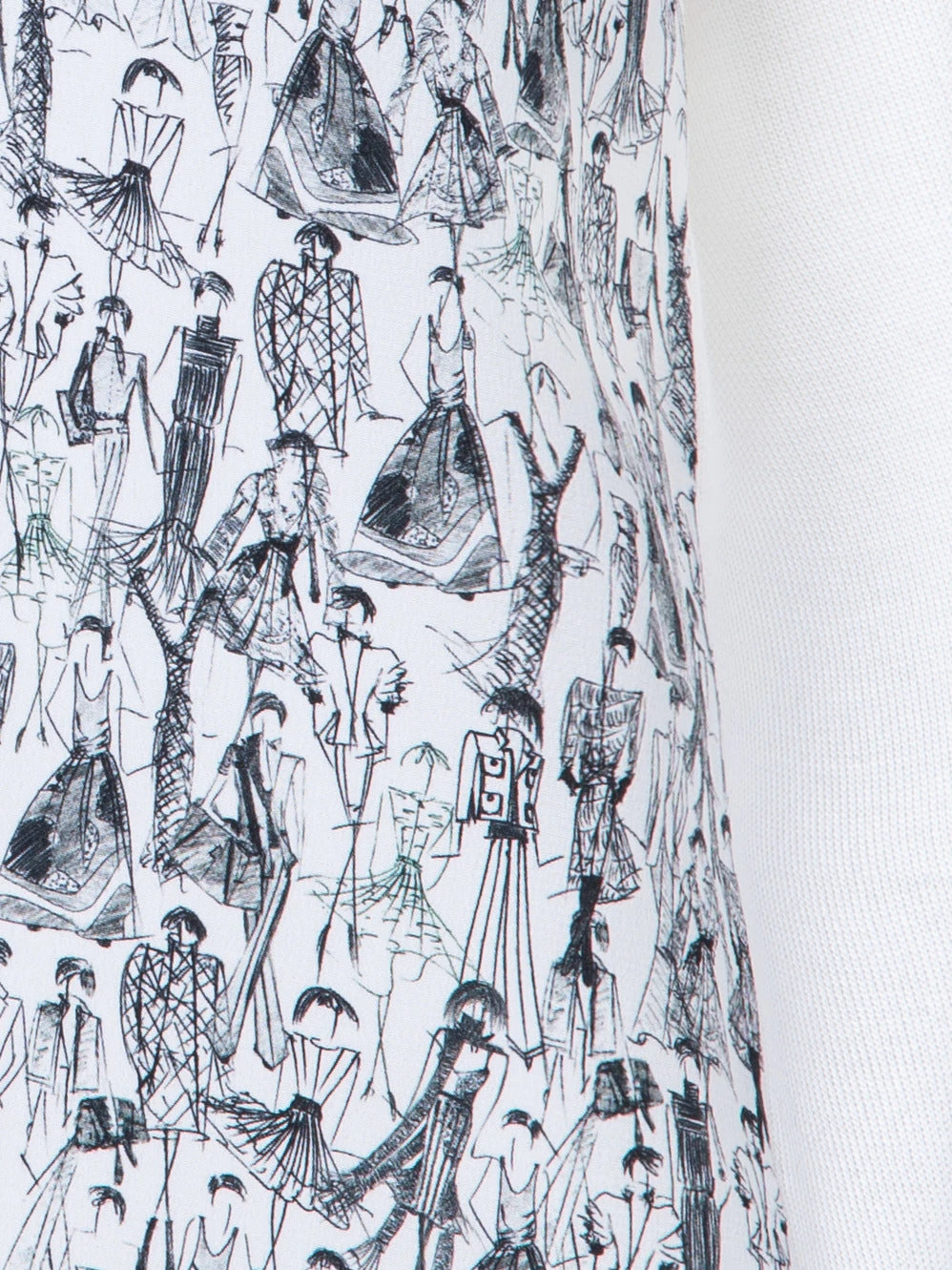 Displaying sketches by creative director Albert Kriemler, the Croquis print of Akris Spring 2023 tells a very personal story. Witty and charming, it was designed by his team as an anniversary surprise.