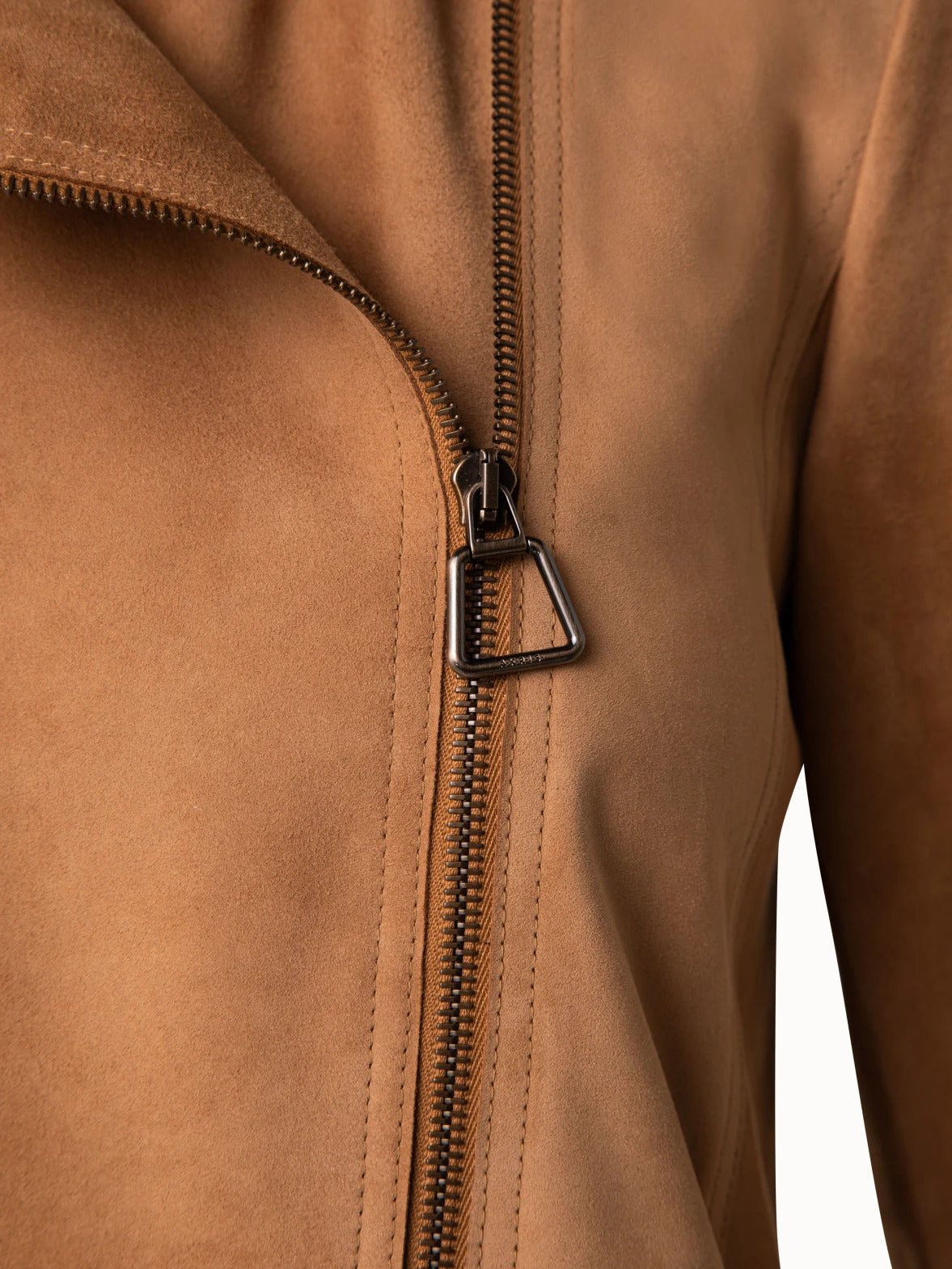 This Akris Clary motorbike jacket is crafted in a supple lamb suede that was treated with a Nappalan coating to make it even softer and silky smooth. Keeping with the traditional perfecto style, it features a cropped fit and asymmetrical zippers. The design is reduced to its core elements to create a sleek look.