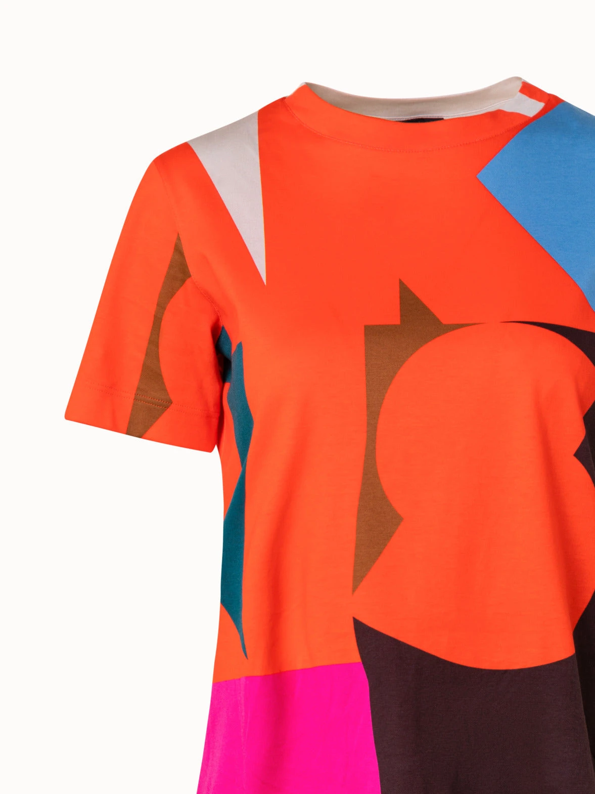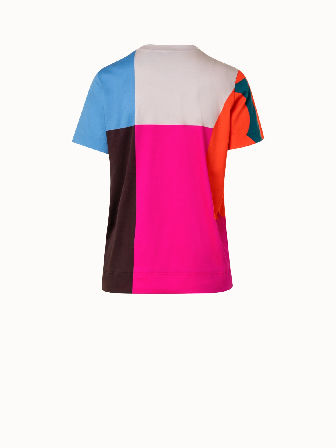 The Akris women’s t-shirt is a versatile and comfortable addition to any wardrobe that is turned into a statement piece with a colorful Composed Letters print. Made from soft cotton jersey, this t-shirt features a round neck and short sleeves for a classic and timeless look. Perfect for everyday wear, this t-shirt can be dressed up or down to suit any occasion. With its comfortable fit and high-quality materials, this t-shirt is sure to become a favorite in your collection.