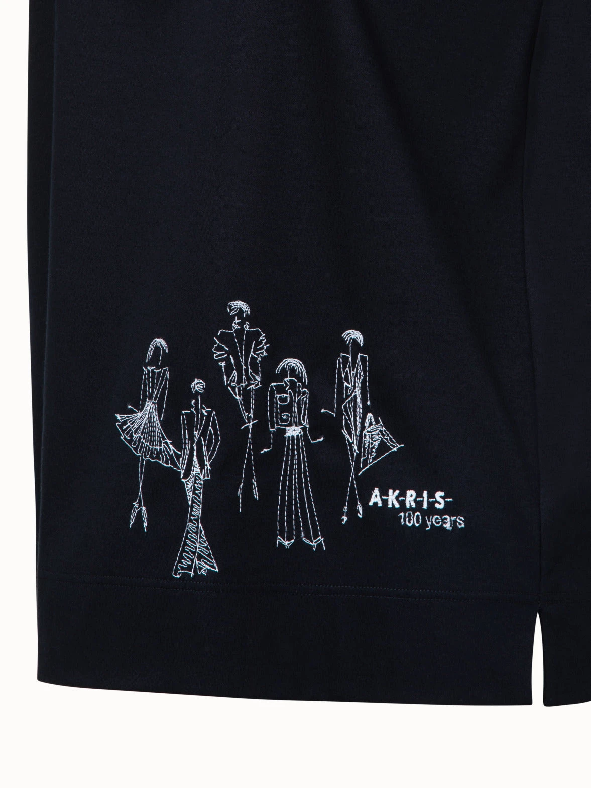 Displaying sketches by creative director Albert Kriemler, the Croquis embroidery of Akris Spring 2023 tells a very personal story. Witty and charming, it was designed by his team as an anniversary surprise.