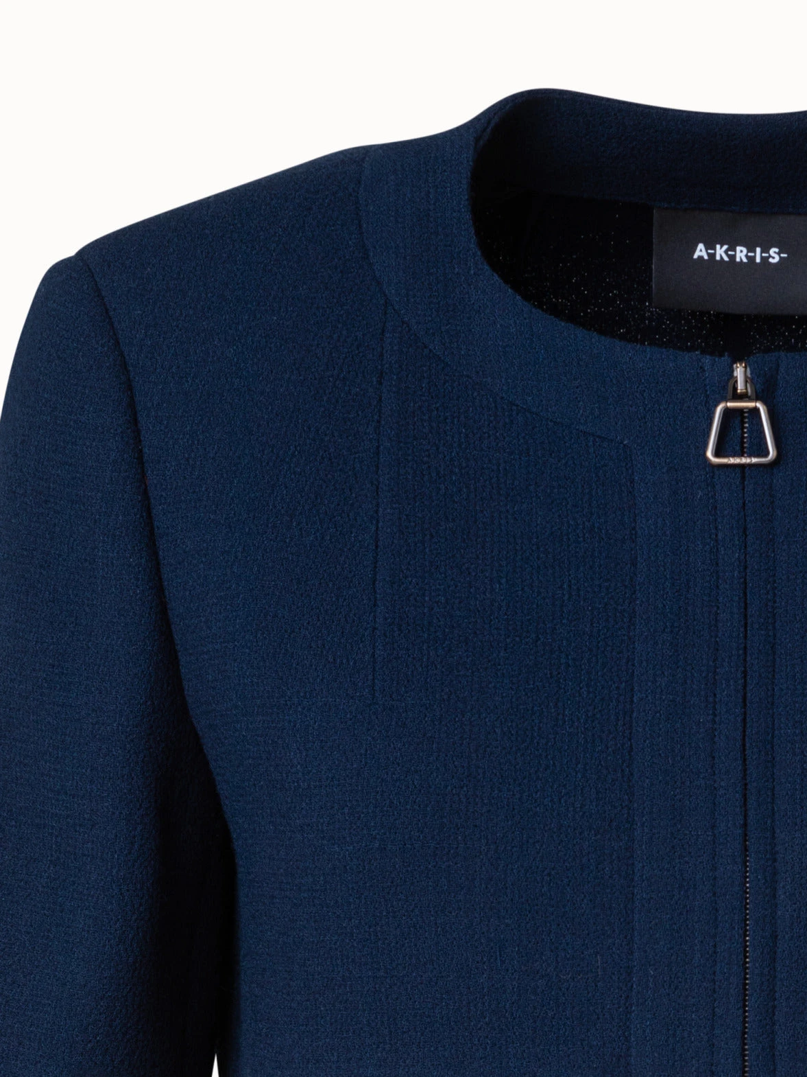 This Akris short jacket Piet is a modern style crafted in wool crêpe double-face, offering a sophisticated look and year-round comfort. The jacket showcases Akris’ tailoring prowess in a detail-rich pattern. Trapezoid-shaped zip pullers on the front closure and bracelet-length sleeves complete this style with a signature touch.