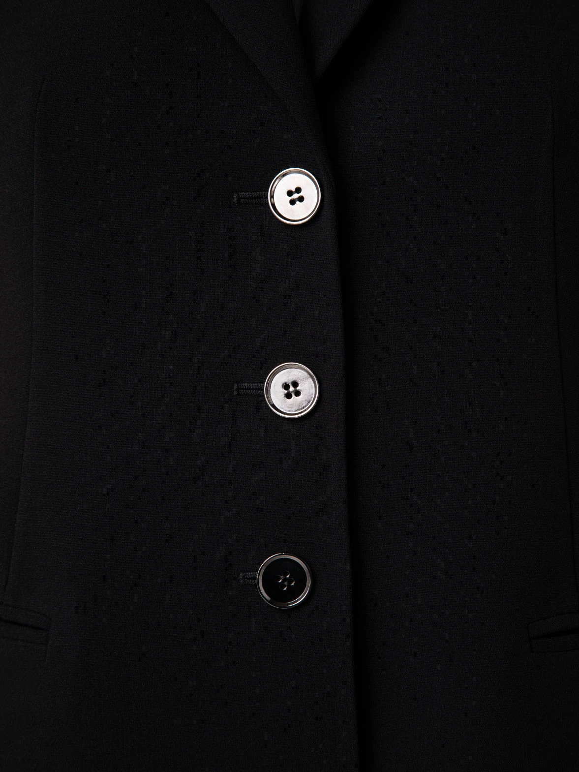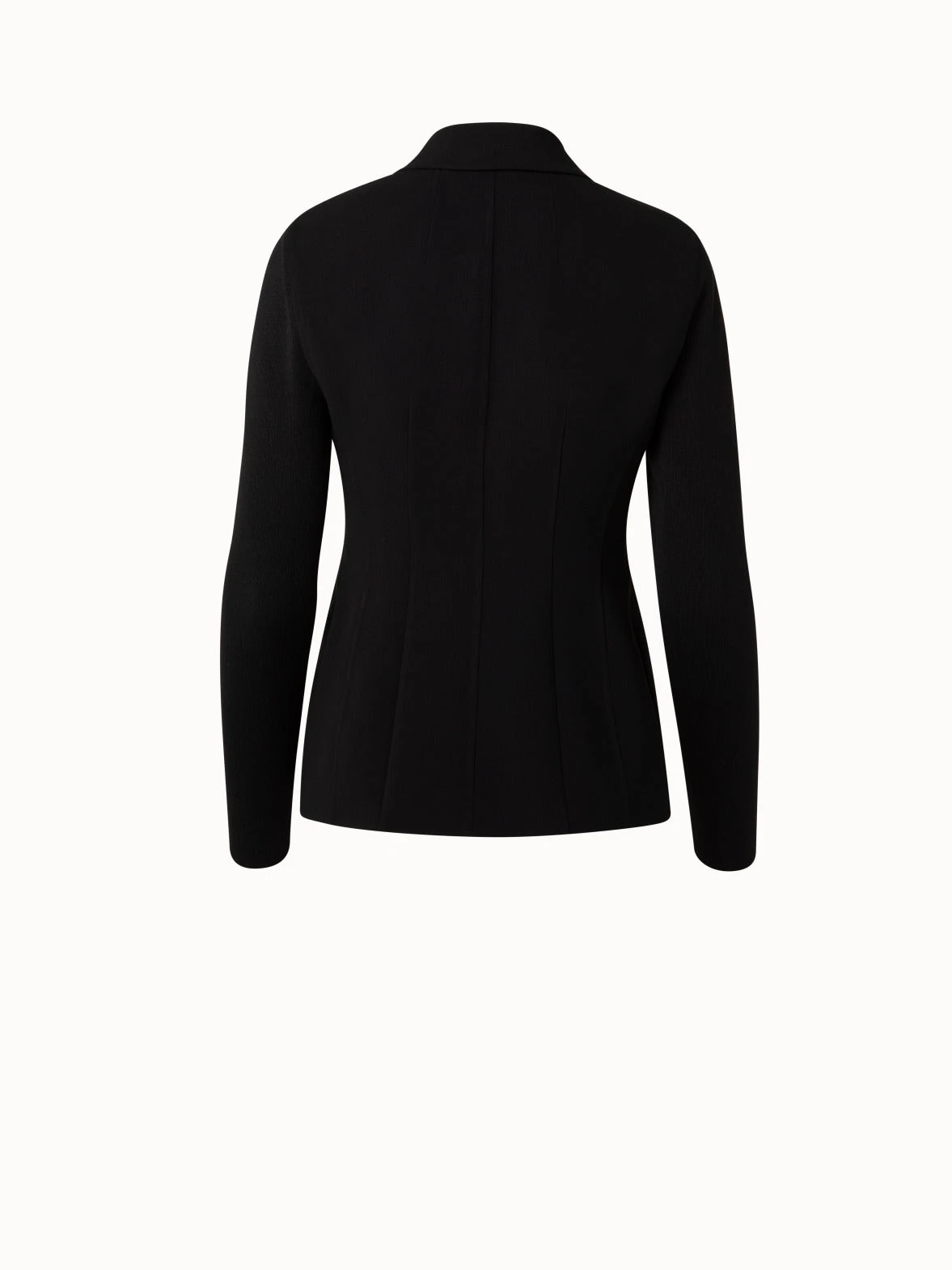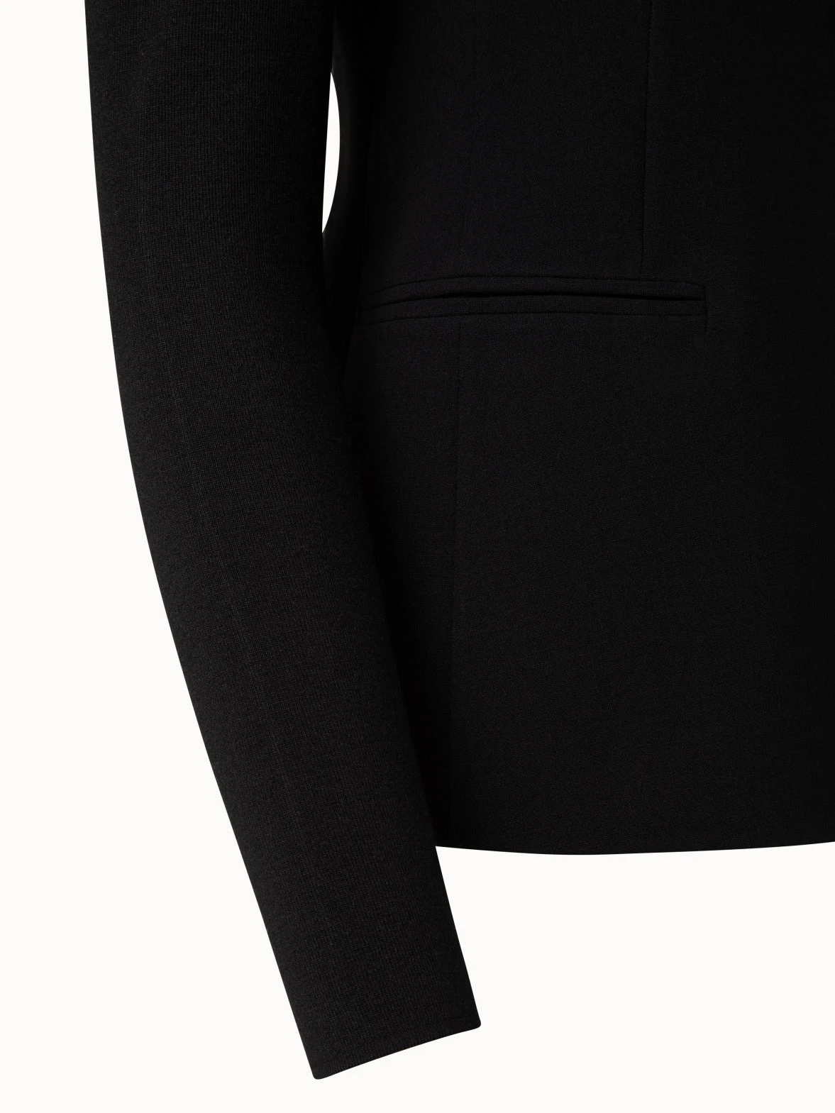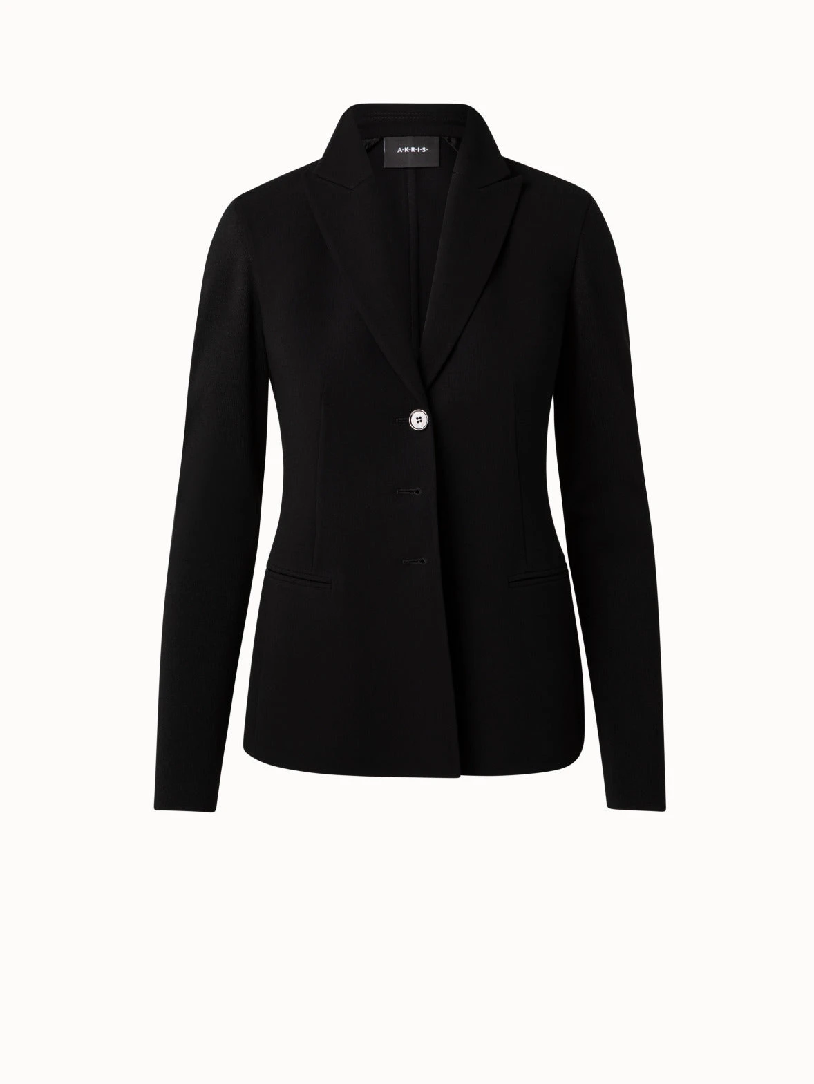 This Akris jacket Ludlow is crafted in the house’s signature wool double-face for a soft and lightweight feel while ensuring it always looks impeccable. The knit sleeves create a sleek silhouette. Double-face is created by weaving together two layers of fabric on specially designed looms, resulting in a fabric with two right sides that does not need to be lined, has a natural stretch, and does not wrinkle. The jacket features a peak lapel, metal buttons, and pockets.