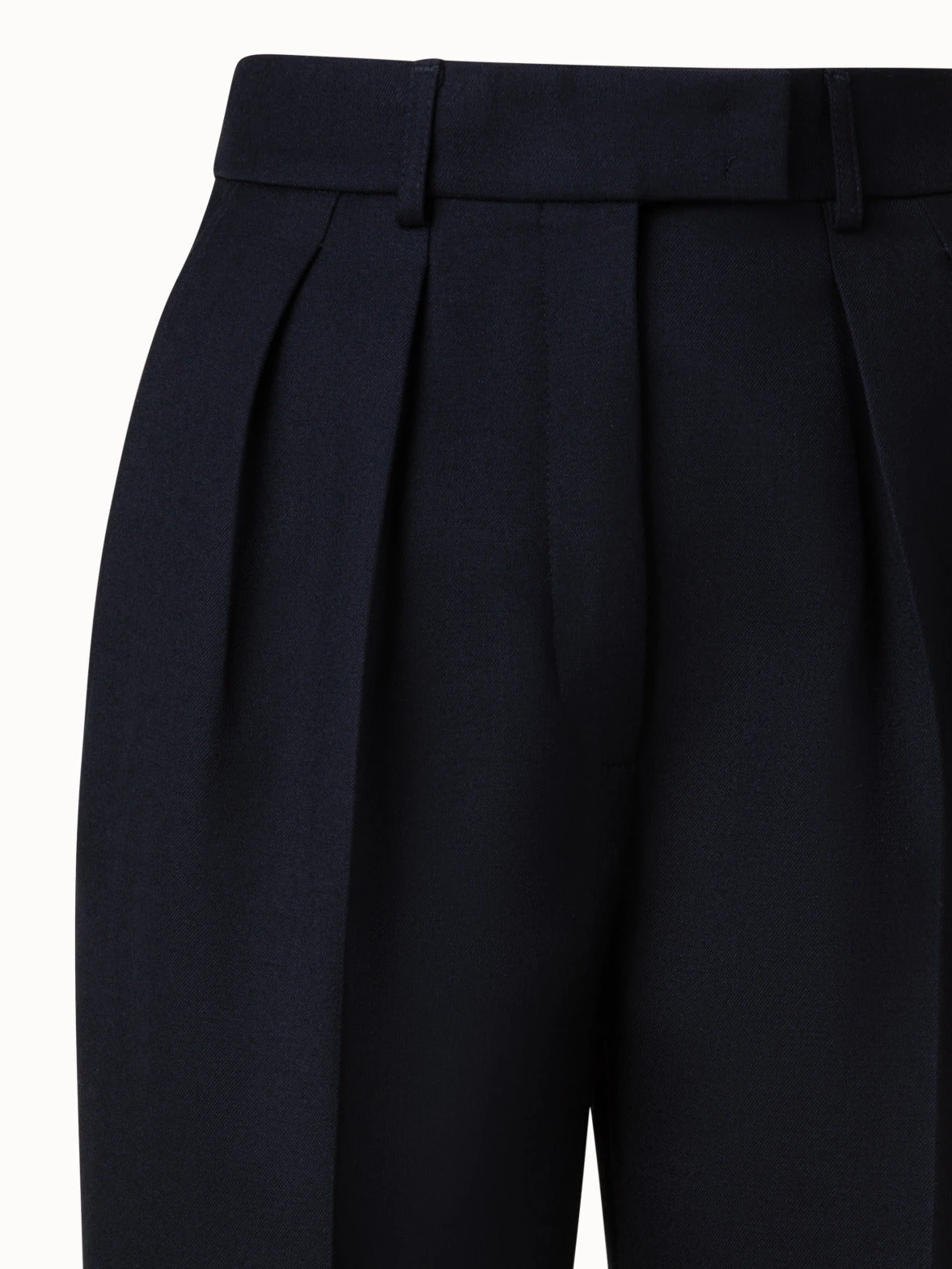 AKRIS Wool Double-Face Pleated Tapered Pants