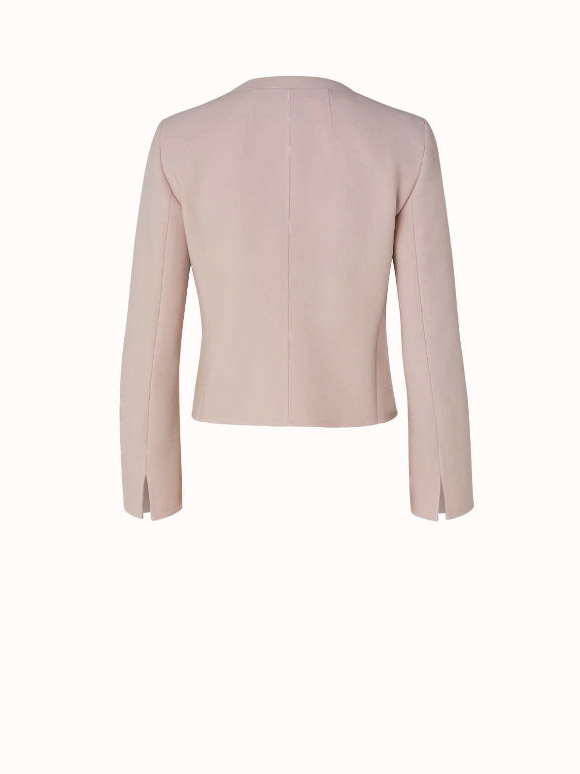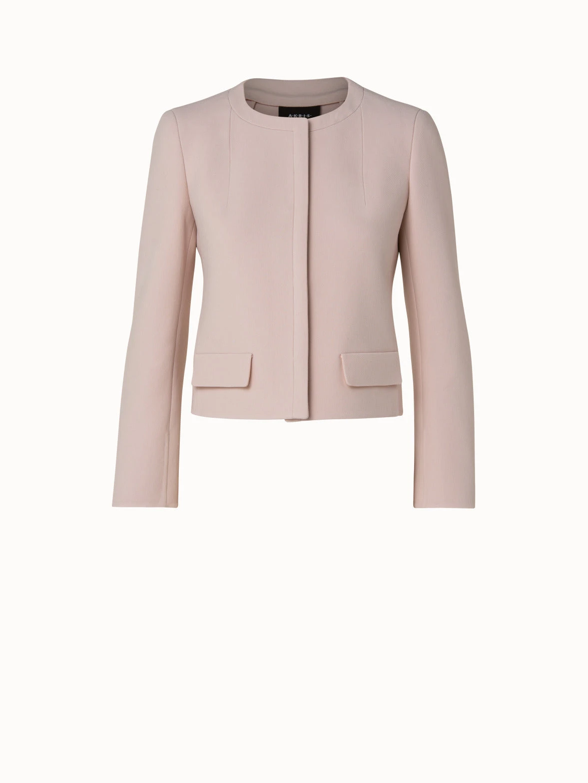 This Akris wool stretch double-face short jacket Geff is impeccably crafted and an invaluable addition to your wardrobe. The round neck, hook closure concealed by a front panel, and back sleeve slits make it an elegant garment of choice for many occasions and a timeless classic.