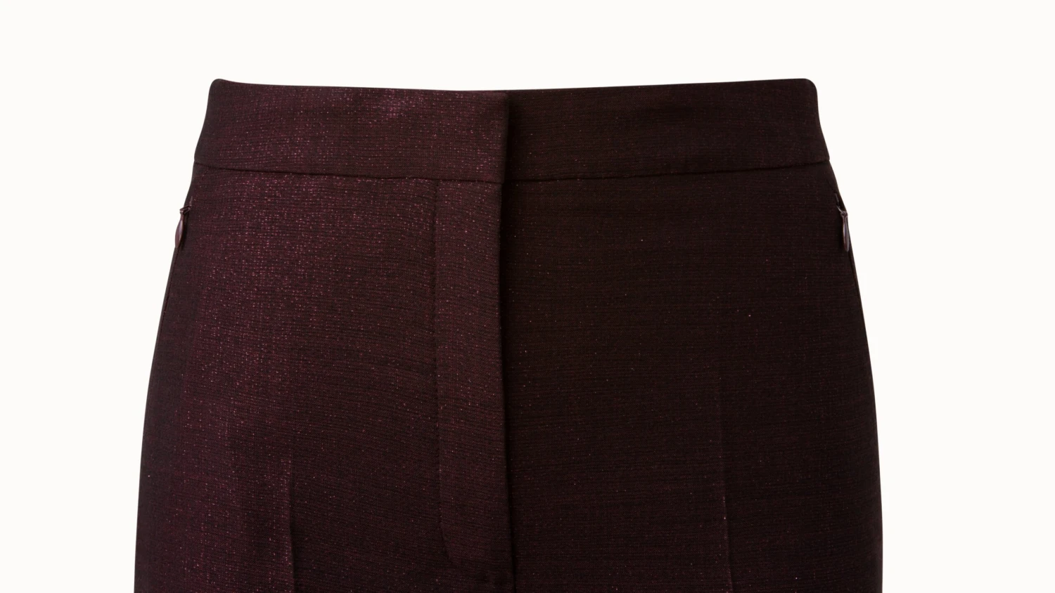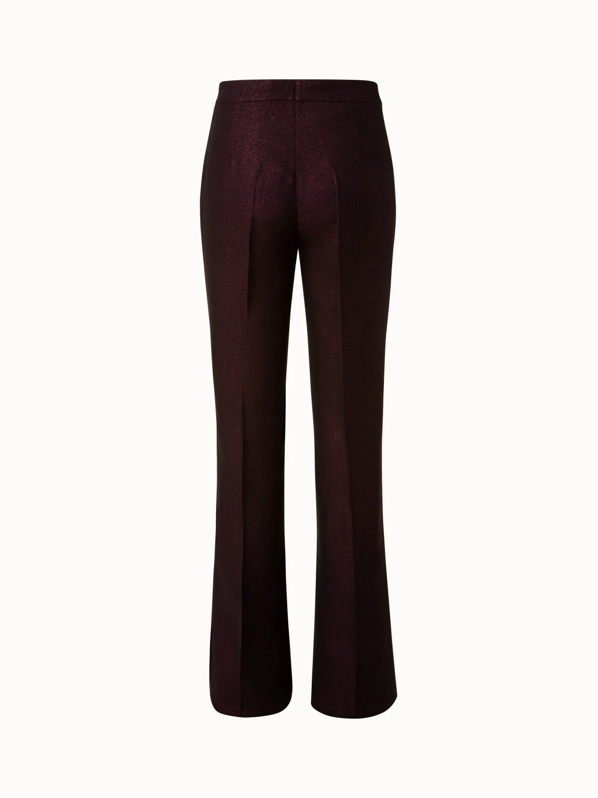 The FARIDA pant, crafted this season in a wool polyester lurex double face, is a universally flattering bootcut style. Designed with a high rise, front closure, and zip pockets, this elongating silhouette will add inches to your frame. Pair with the matching lurex jacket for a modern cocktail suit.